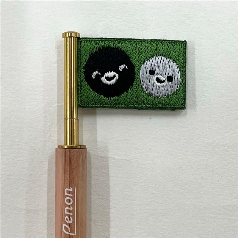 木軸には森林認証の木を使い、使えば使うほど森が増えるエシカル文具です。刺繍のフラッグは刺繍作家が担当し、Suicaのペンギンの表情を糸で緻密に再現しています。にっこり笑うSuicaのペンギンと子ペンギンが可愛いデザインです。