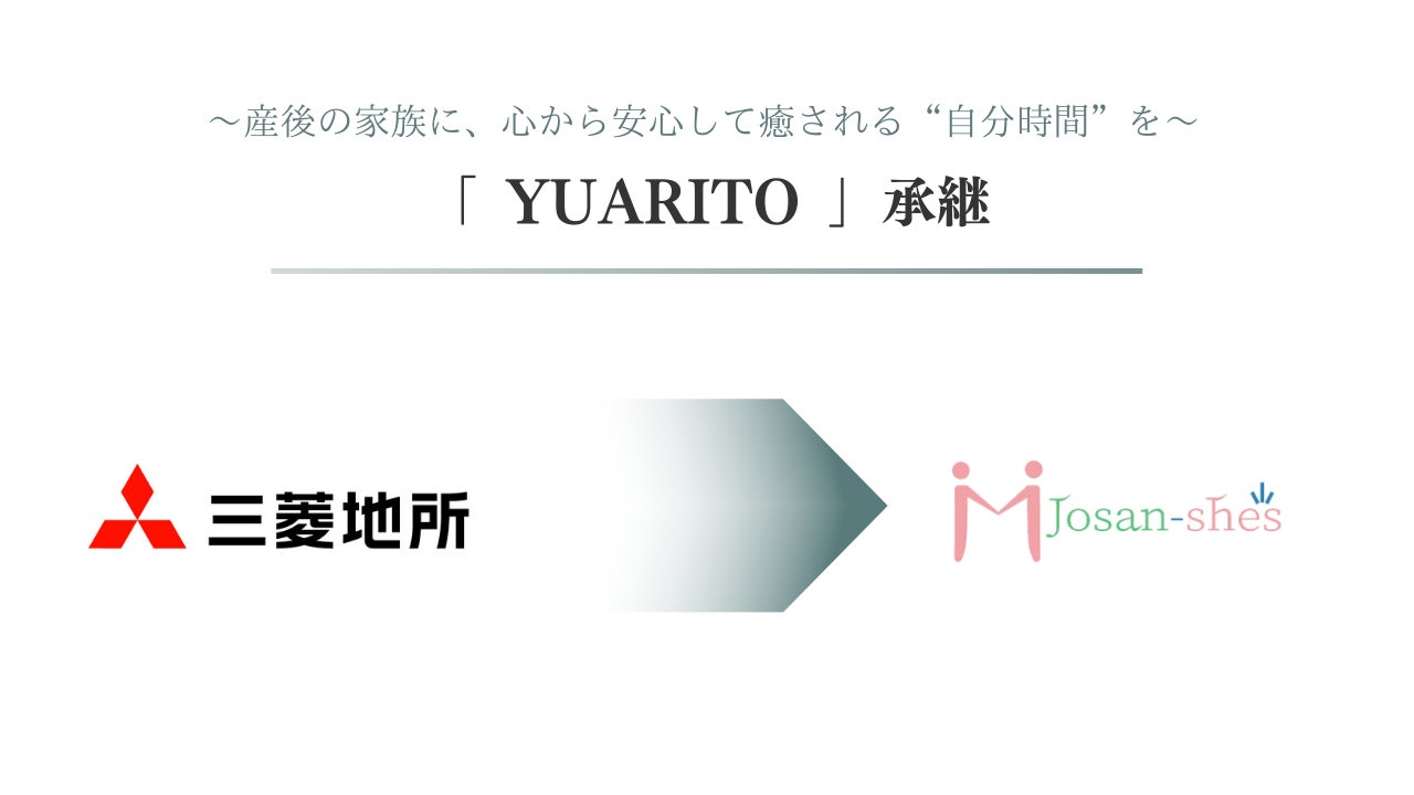 株式会社Josan-she's(本社所在地:東京都中央区 代表取締役CEO:渡邊愛子 以下ジョサンシーズ) は、三菱地所株式会社(代表執行役 執行役社長 中島 篤 氏 以下三菱地所)が事業検証のために運営されていた宿泊型産後ケアサービス「YUARITO」及び日帰り型産後ケアサービス「YUARITO DAY」を事業承継する運びとなりましたことをお知らせいたします。
