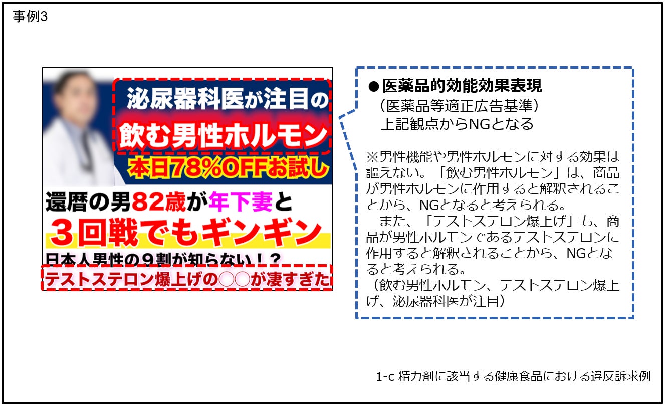 c. 【新規指摘】飲むだけで男性機能を向上させるかのような表現