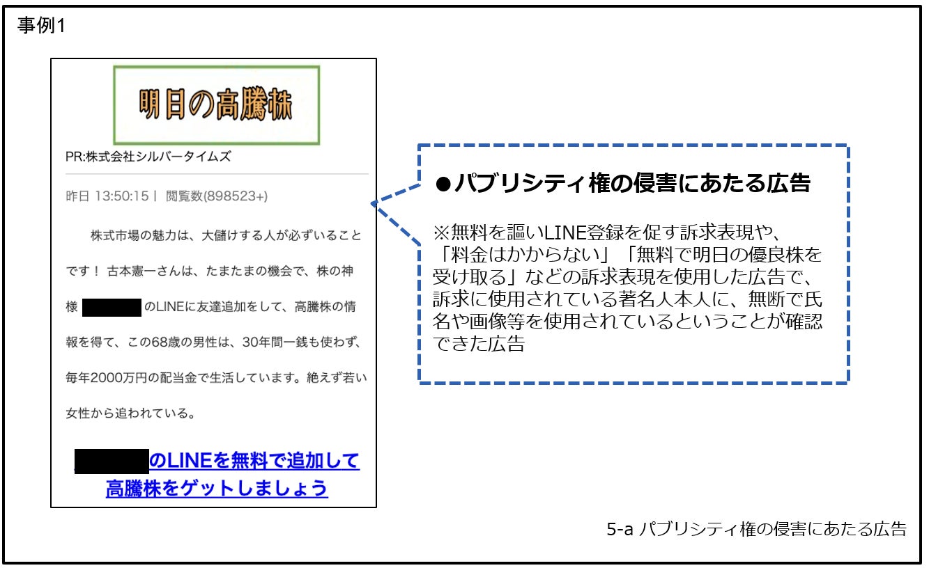a. 【新規指摘】パブリシティ権の侵害にあたる広告(著名人の名前や画像等を無断利用していることが明確に判明している広告)