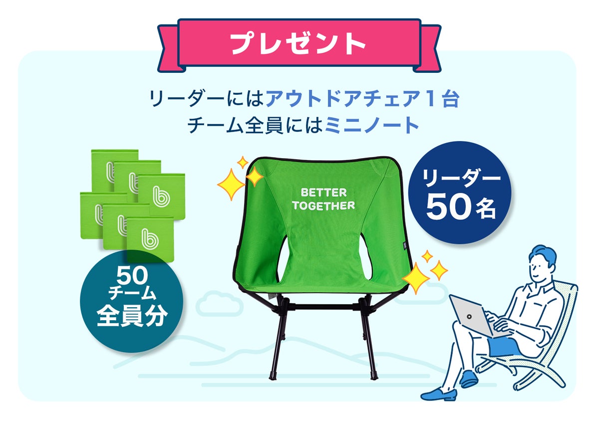 今新しいBandを開設して、3人以上のメンバーを招待すると、リーダーにはこの先の本格的なアウトドアシーズンでゆったりと休めるアウトトアチェアを、そしてメンバー全員にも持ち運びに便利なミニノートをプレゼントします。