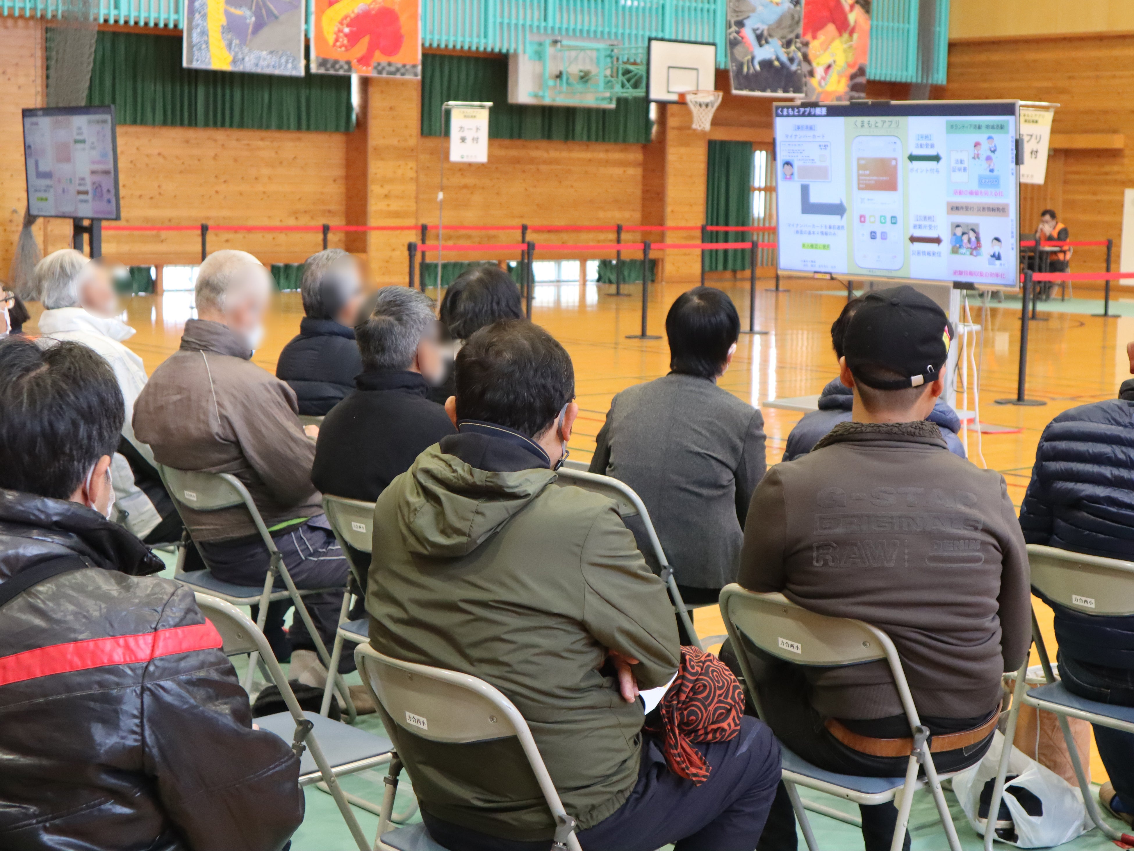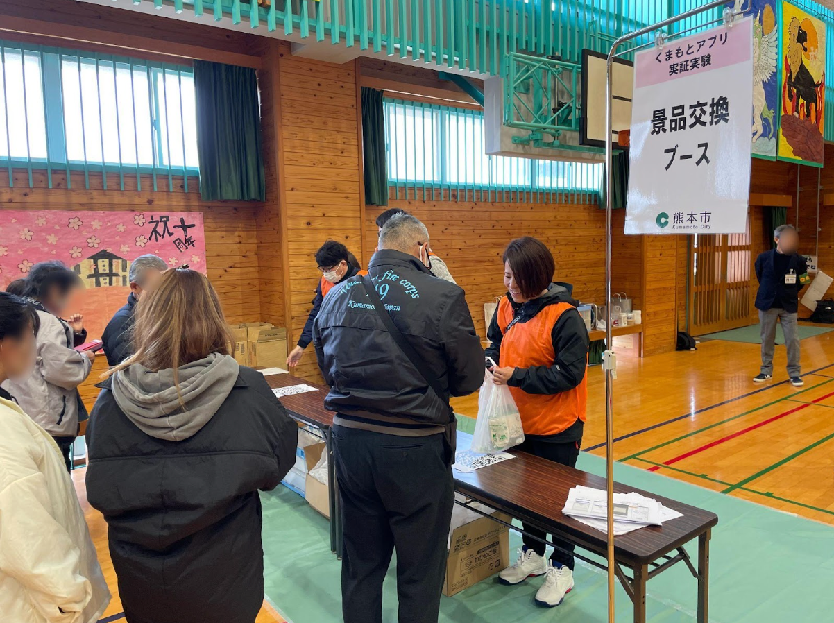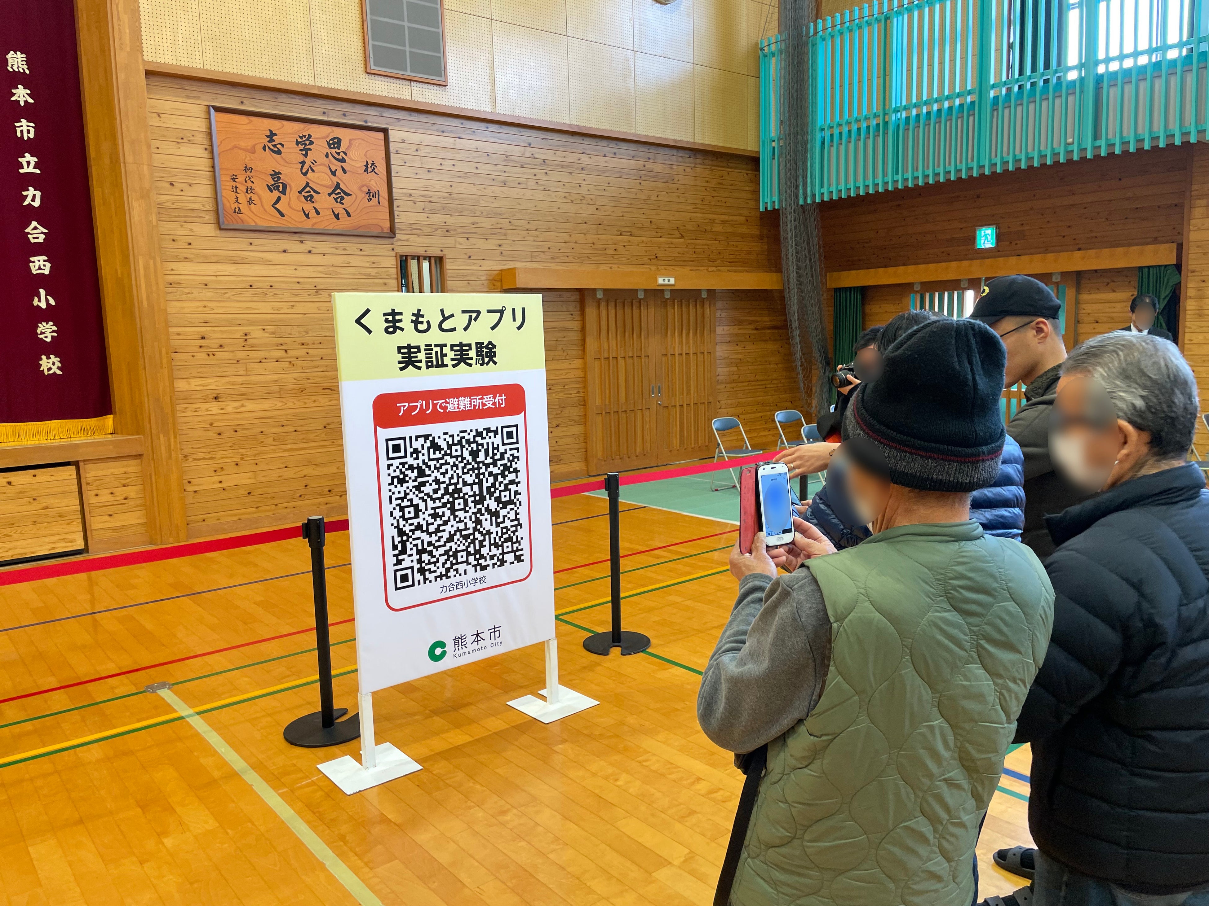 2024年2月25日に実施した実験では、「くまもとアプリ」の防災機能を用いることで、避難所受付の1人あたりの所要時間が従来の約1/15に短縮され、受付効率が大幅に改善されることが実証されました。また、ボランティア活動に関する実証実験では、アプリを使ったボランティア参加とポイント付与を行い、参加者がアプリ利用の流れを体験しました。
