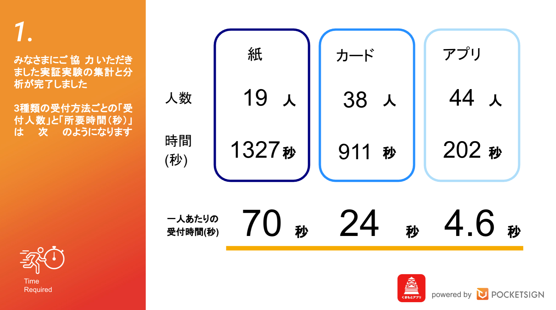 ・「くまもとアプリ」での受付:44人を受け付けるのに202秒(1人あたり4.6秒)