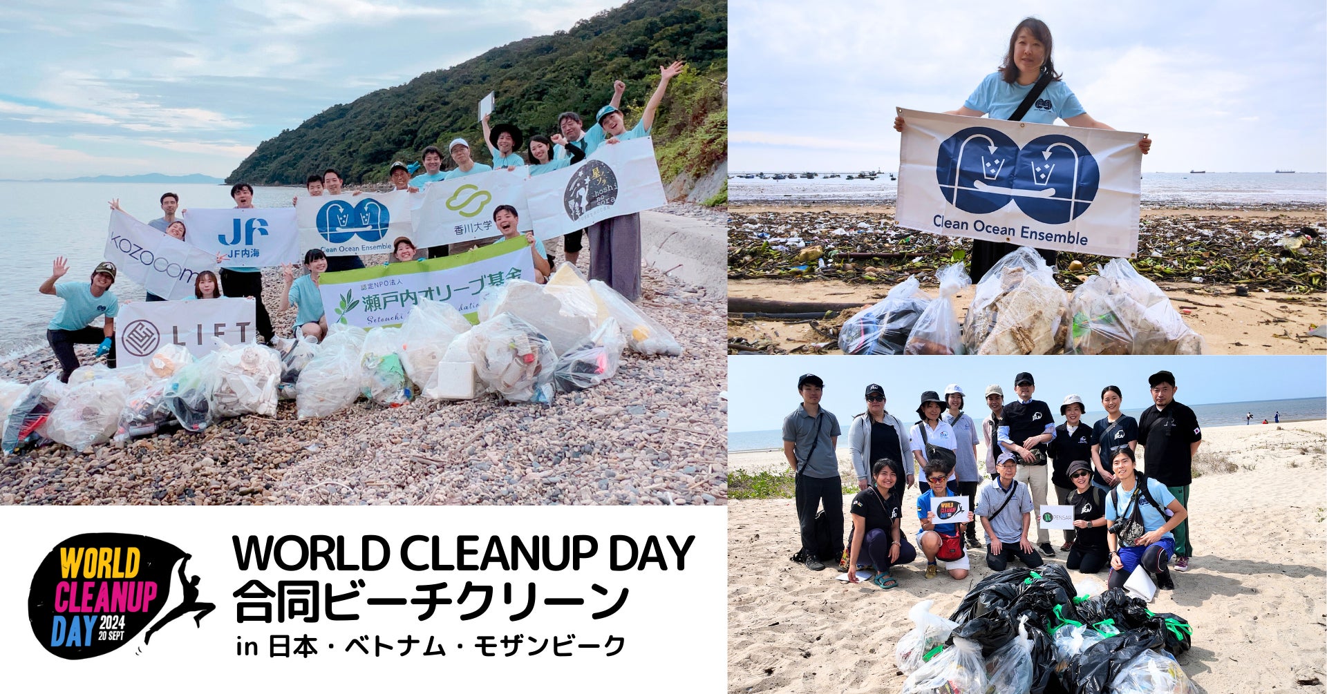 海洋ごみ問題解決に向けて活動するNPO法人クリーンオーシャンアンサンブル(香川県小豆郡小豆島町、代表理事:江川裕基)は、9月21日(土)に小豆島(日本)、ブンタウ(ベトナム)、マプト(モザンビーク)の3ヶ国で同時にビーチクリーンを実施するイベント「WORLD CLEANUP DAY 合同ビーチクリーン」を開催しました。