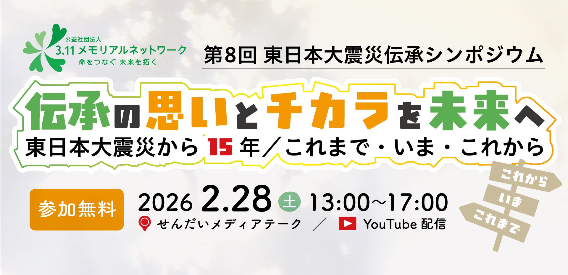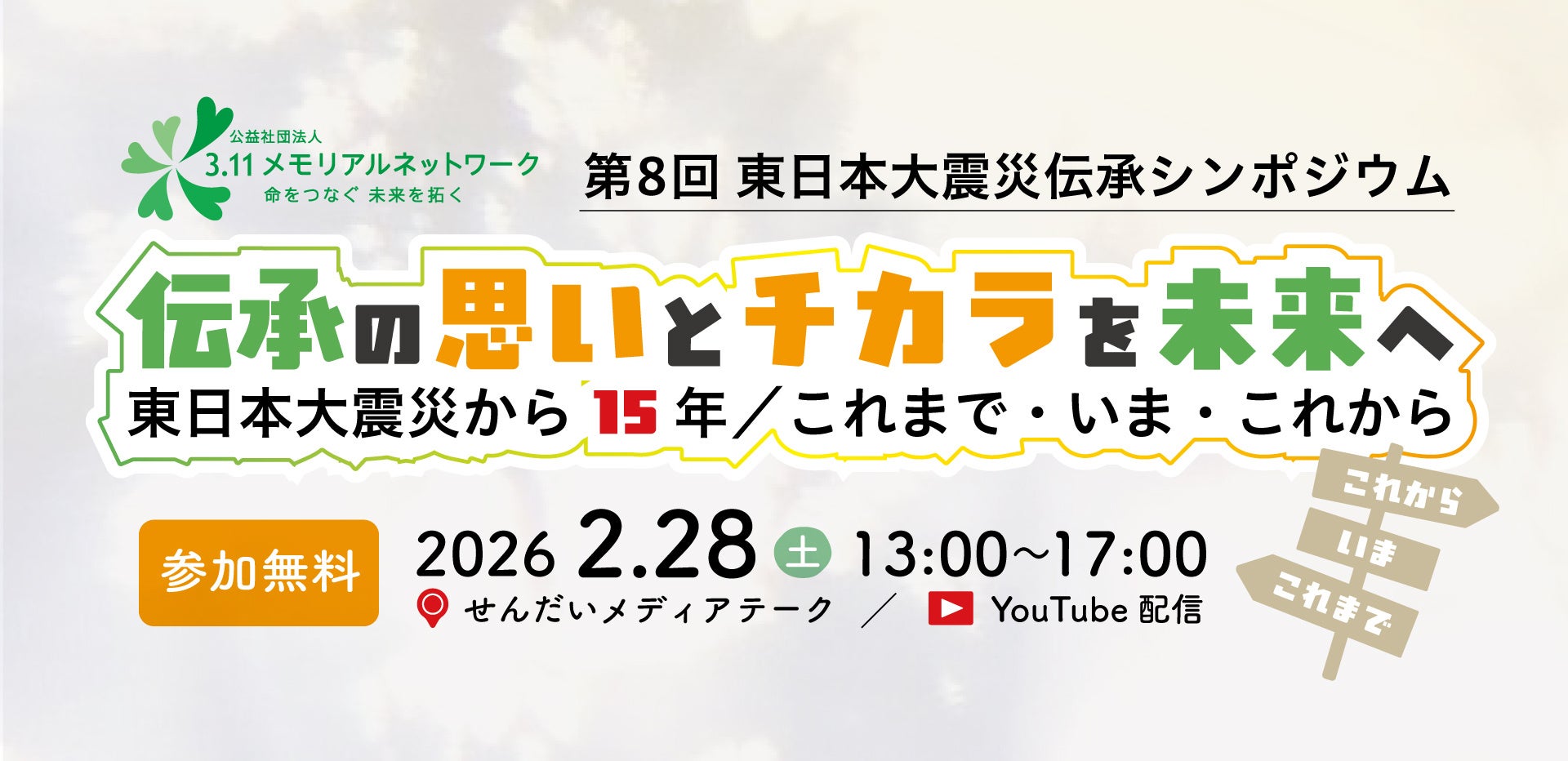 公益社団法人3.11メモリアルネットワーク(所在地:宮城県石巻市、代表理事:武田真一)は、東日本大震災から15年を迎える2026年2月28日(土)、「第8回 東日本大震災伝承シンポジウムin仙台」を、せんだいメディアテークにて開催します。