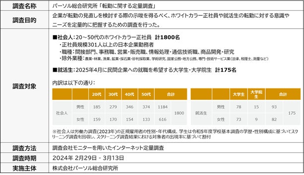 本調査は、社会人や就活生の転勤に対する意識やニーズを定量的に把握することで、企業が転勤制度の見直しを検討する際の示唆を得ることを目的に実施しました。 ※転勤は「国内転勤(転居を伴う異動)」を対象として調査を行いました。