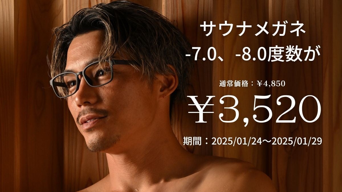 を実施します。さらに、サウナメガネの-7.0、-8.0度数を通常価格¥4,850(税込)から特別価格¥3,520(税込)にてご提供!この機会をお見逃しなく!