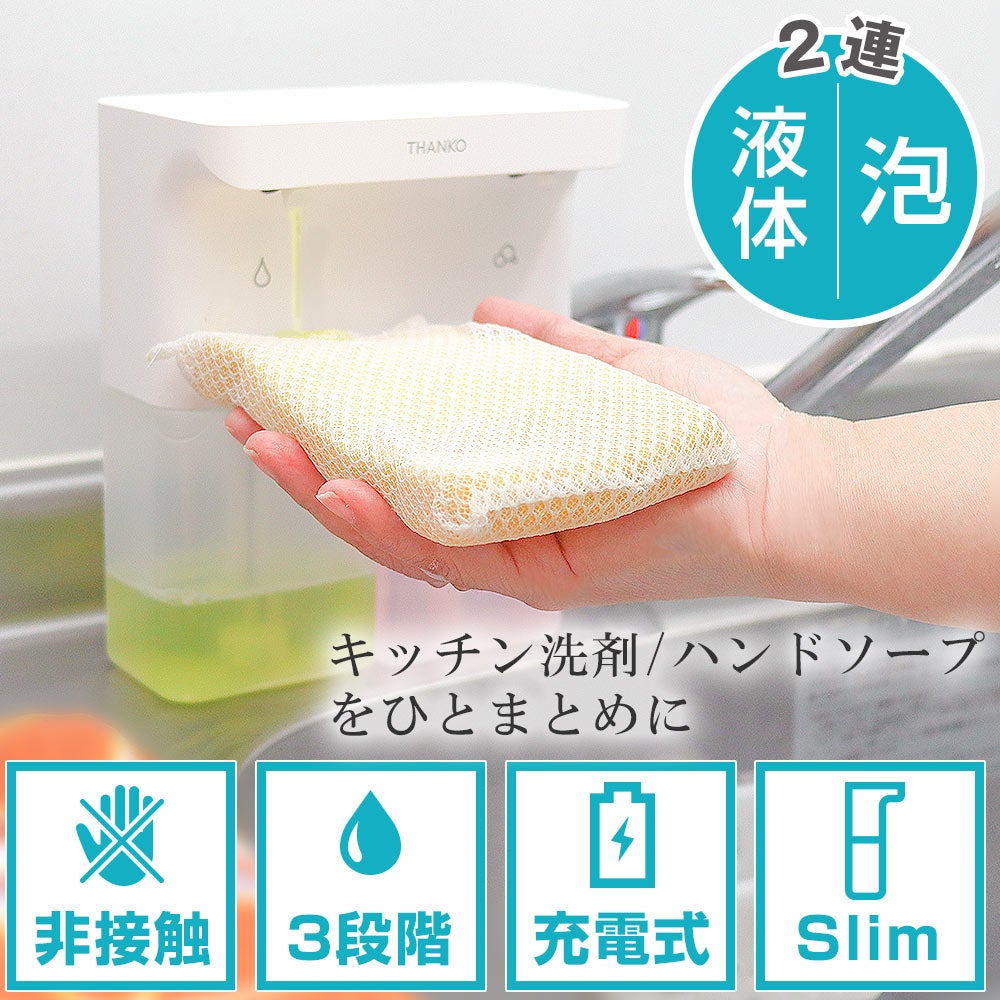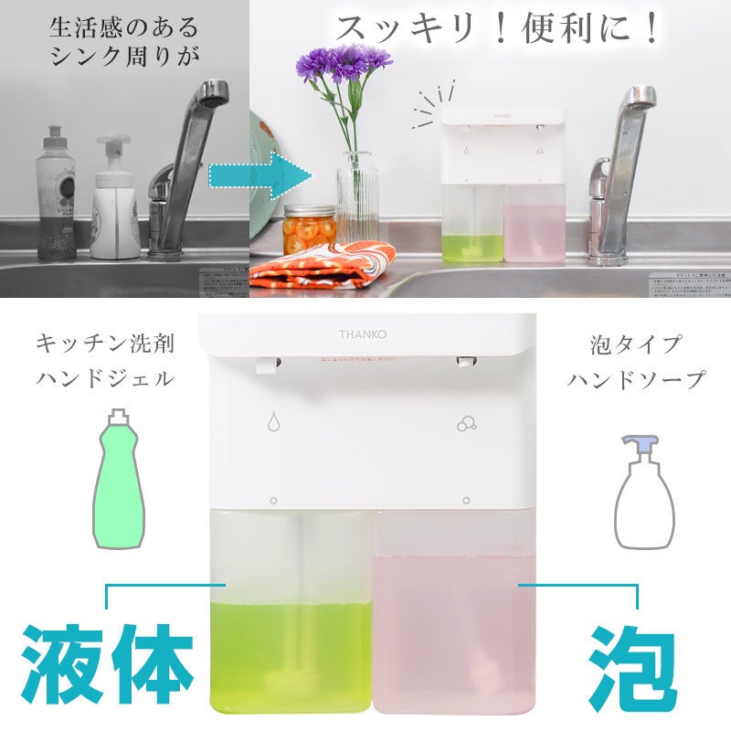 キッチン洗剤ボトルやハンドソープを自動で出るようにしたい。シンク周りをスッキリさせたい。そんな方におすすめの『泡と液体「2連オートソープディスペンサー」』です。