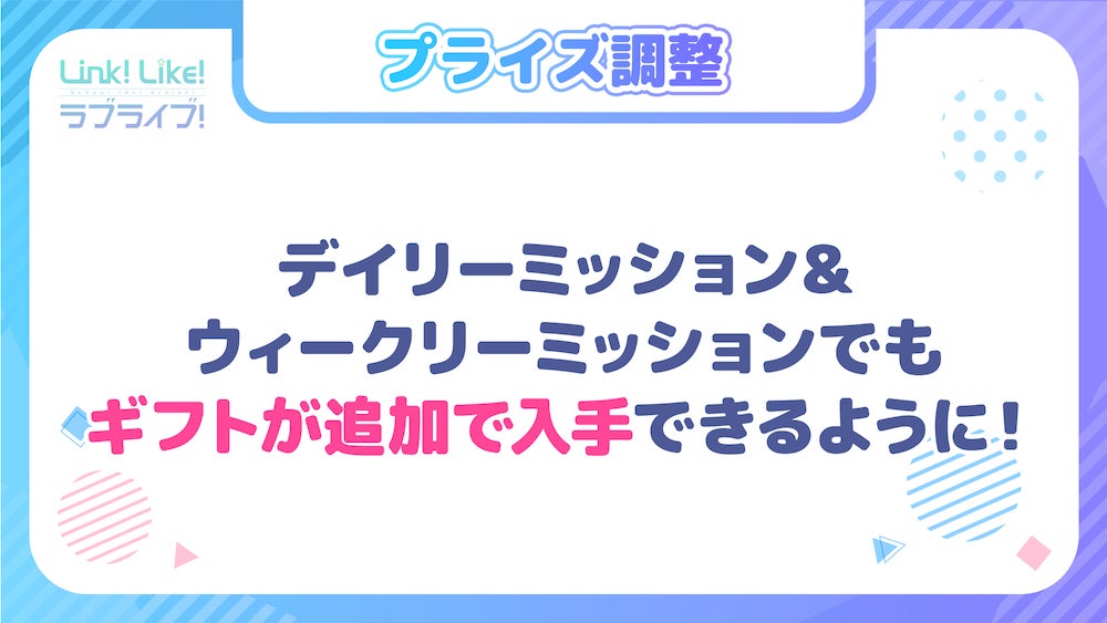 デイリーミッション及びウィークリーミッションにおいて入手できる報酬に「Fes×LIVE」や「With×MEETS」で使用できるギフトが追加で入手できるようになります。
