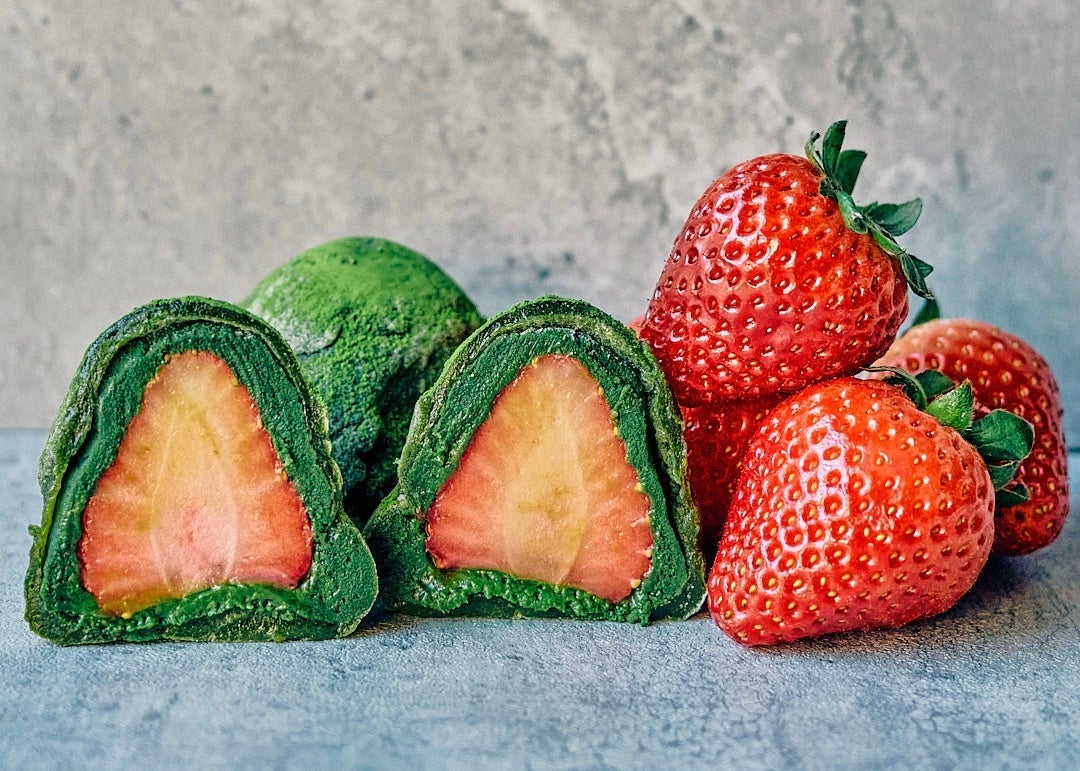 抹茶と苺が互いに引き立て合う新商品「八十八苺大福」。