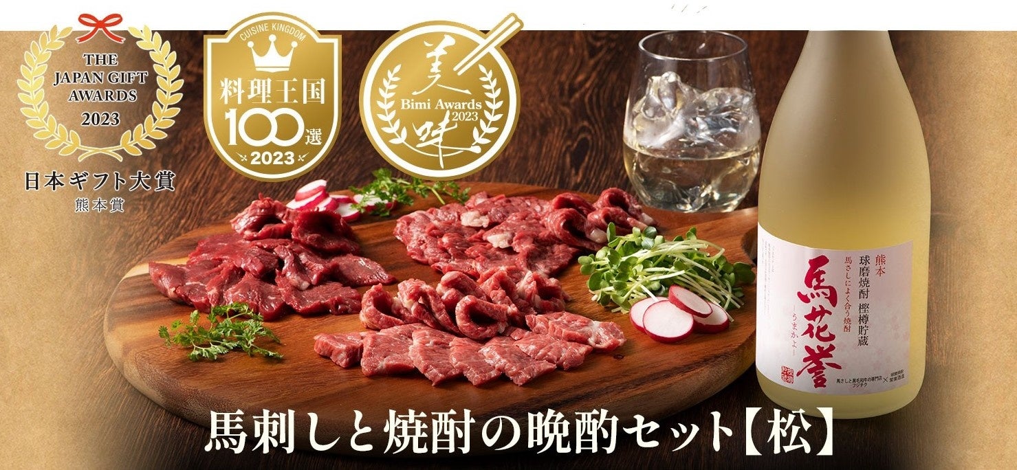 食のプロや食通が審査する数多くのメディアに受賞を頂いている商品。業界でも珍しい「馬刺しに合う焼酎」をセットにした晩酌セットはフジチクのオンラインショップでも贈り物として人気の高いギフト商品です。