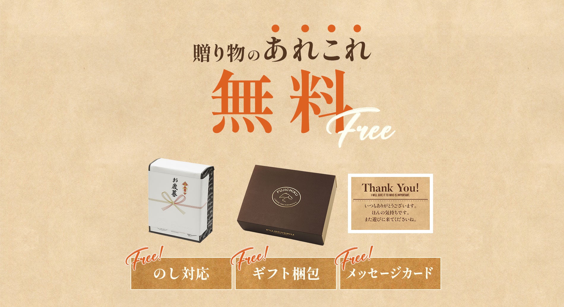 お歳暮商品はギフト梱包・熨斗・ギフトカードが無料でお付けすることが可能です。