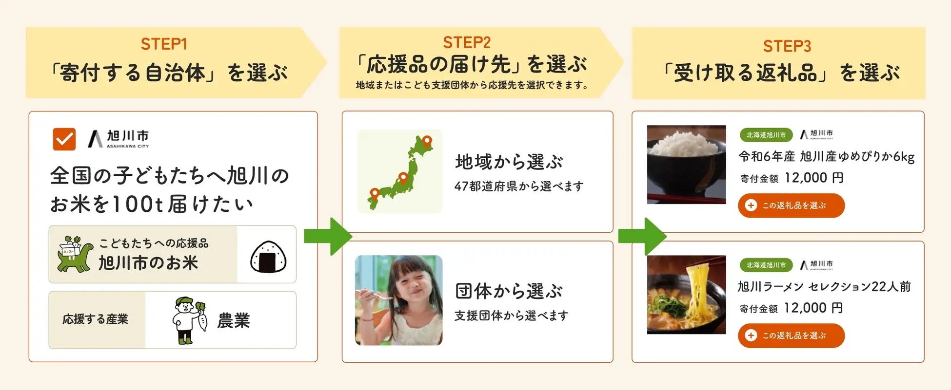 2025年10月14日(火)、寄付者が応援品の届け先の地域や団体を指定できる専用ポータルサイトを公開しました。専用ポータルサイトからの寄付では、寄付先の地域だけでなく、「応援品を届けるこどもたち」も選ぶことができ、ふるさと納税の使いみちに、より想いを込められるようになります。