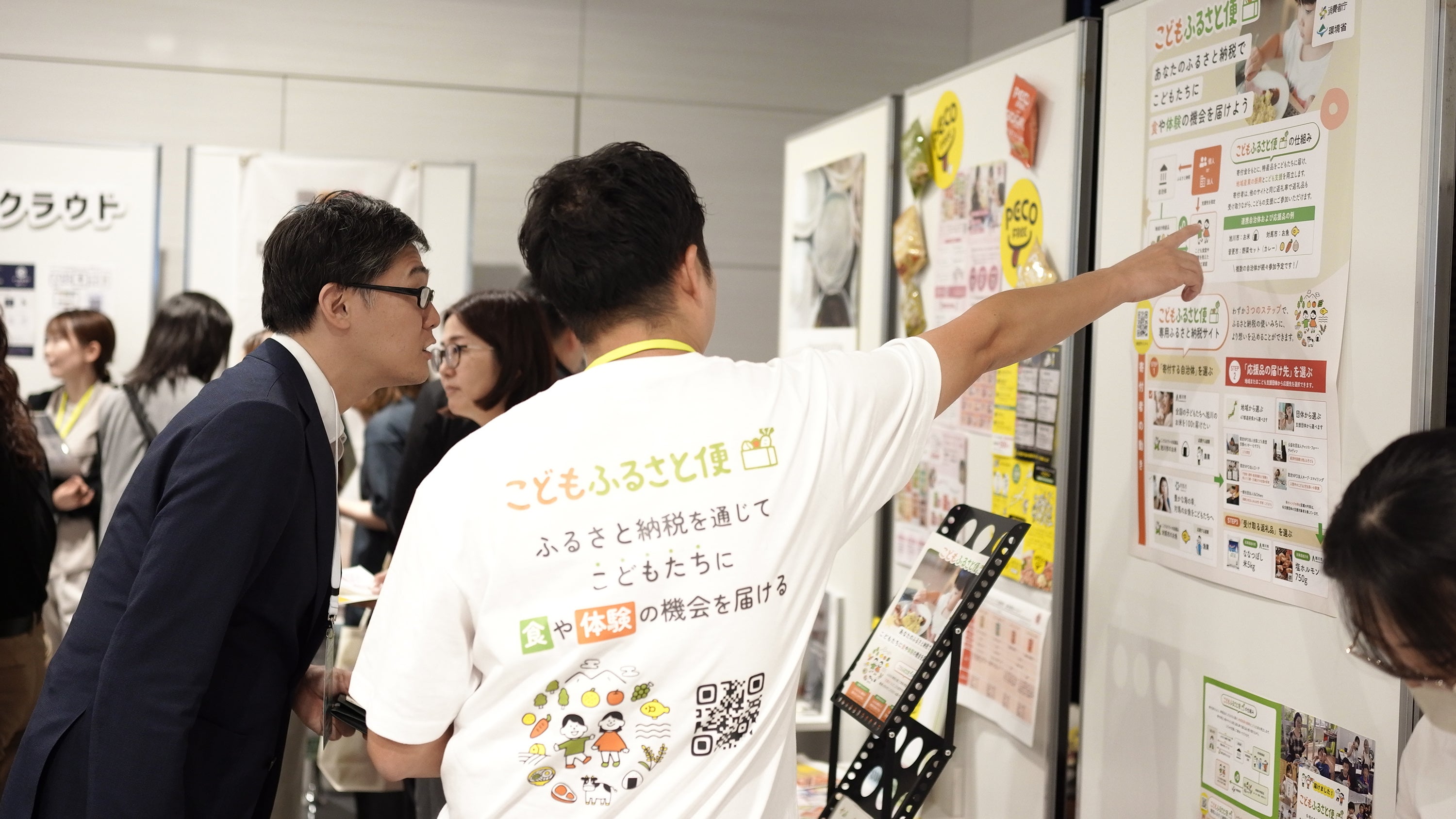 ネッスーの出展ブースでは、ふるさと納税を通じてこどもたちに“食や体験の機会”を届ける「こどもふるさと便」の仕組みをパネルで紹介。