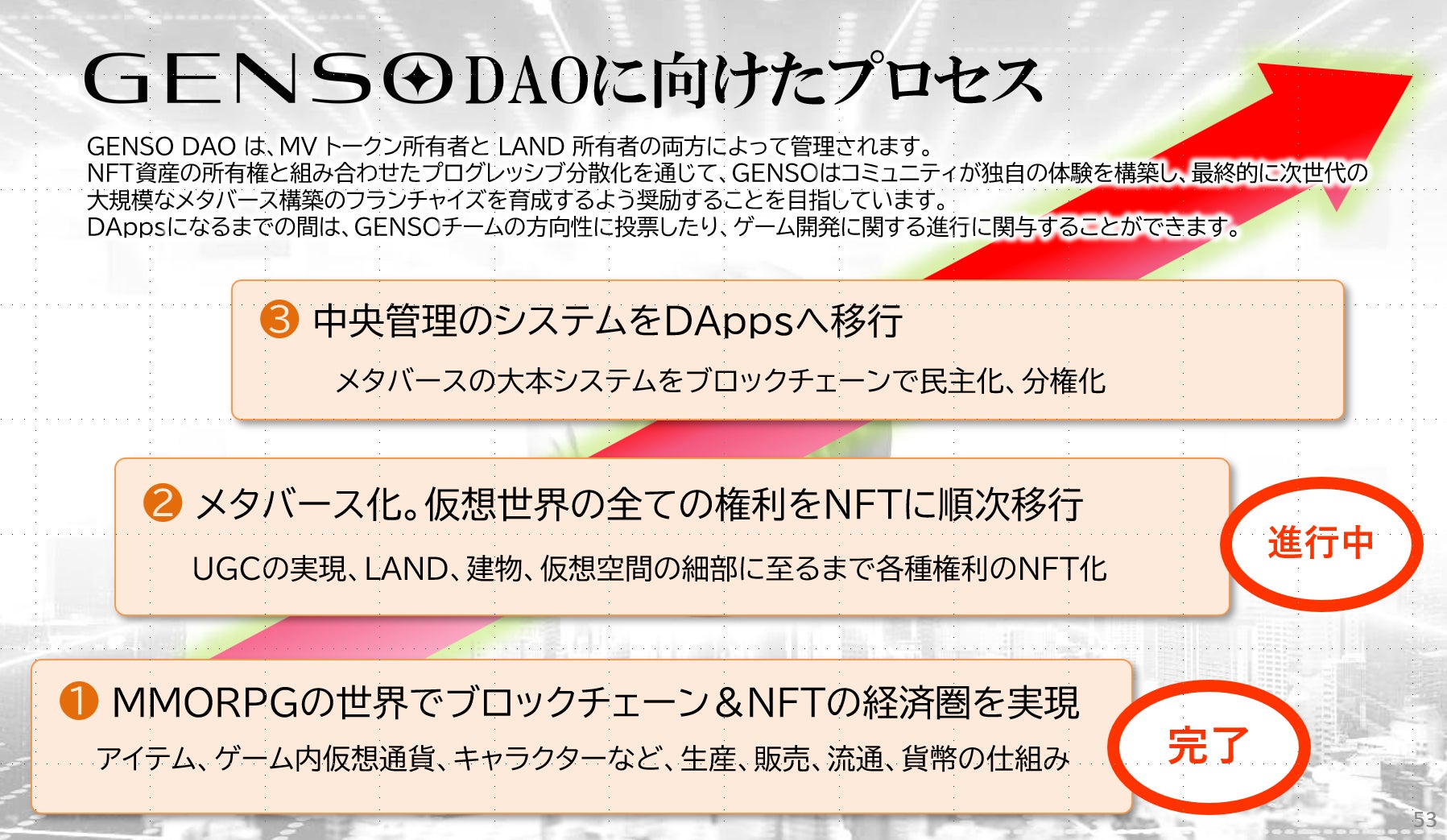 直近においてもGENSOは、様々なメタバース化するためのツールや開発環境を整備することにより、本格的なDAO化が順調に進行していることをご報告いたします。