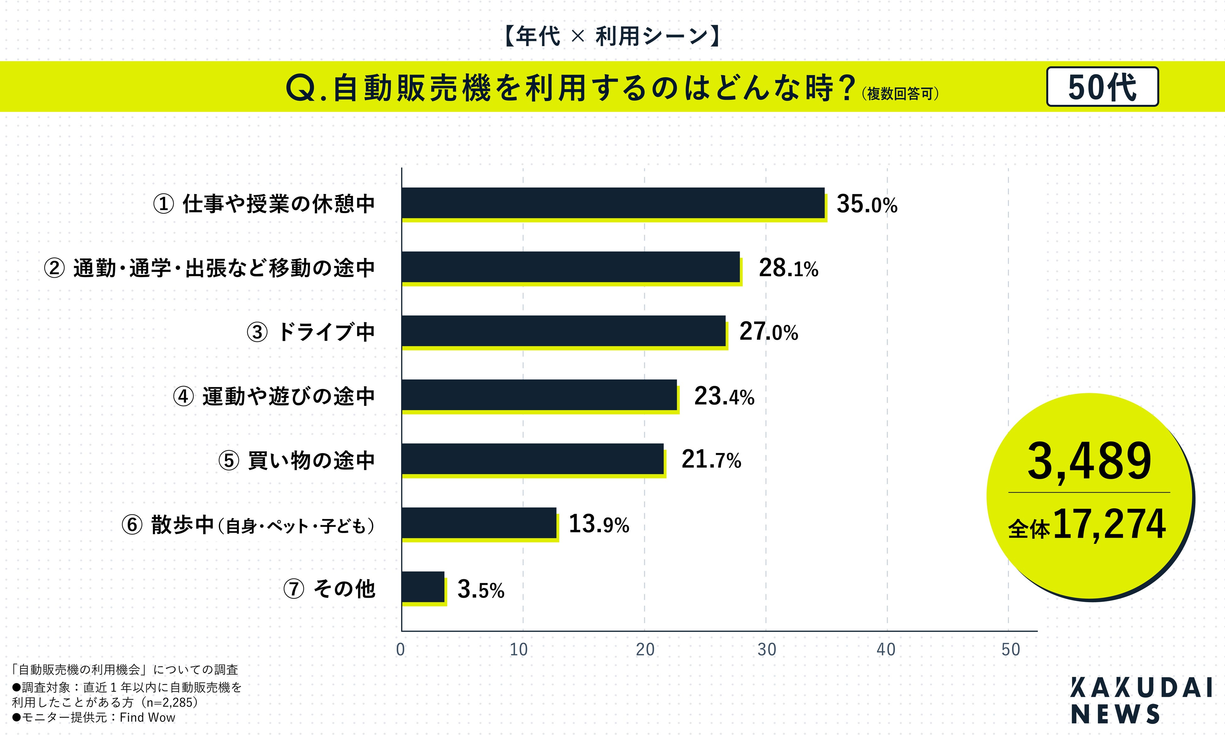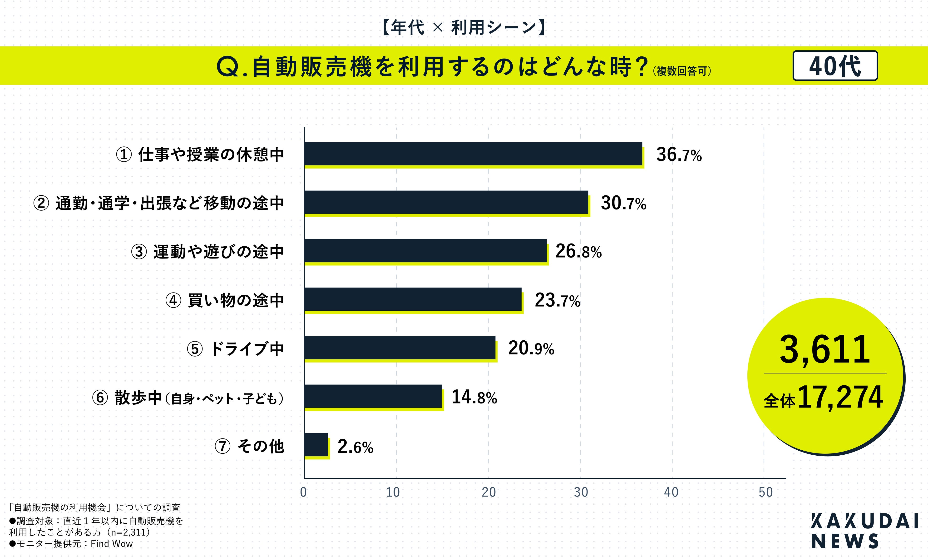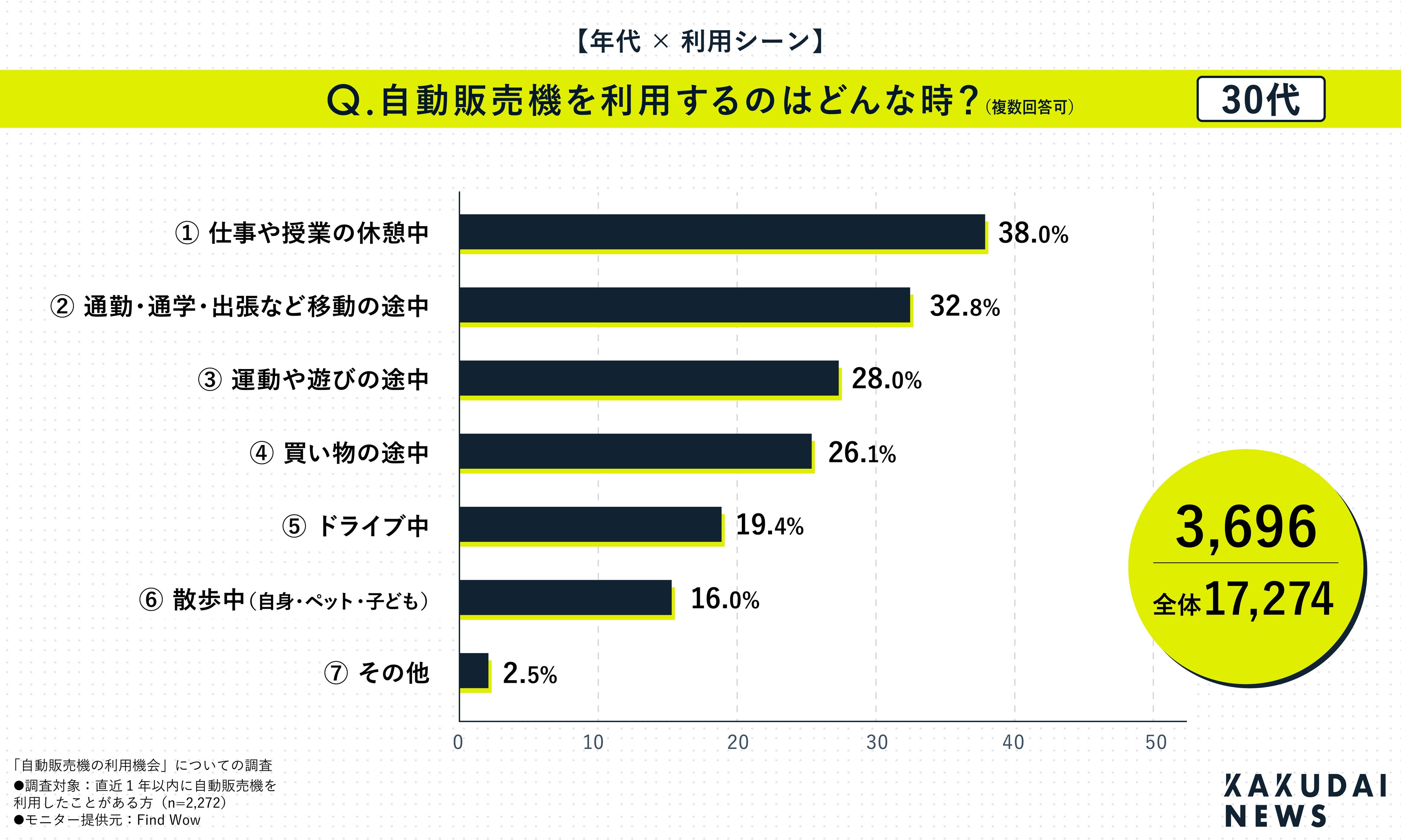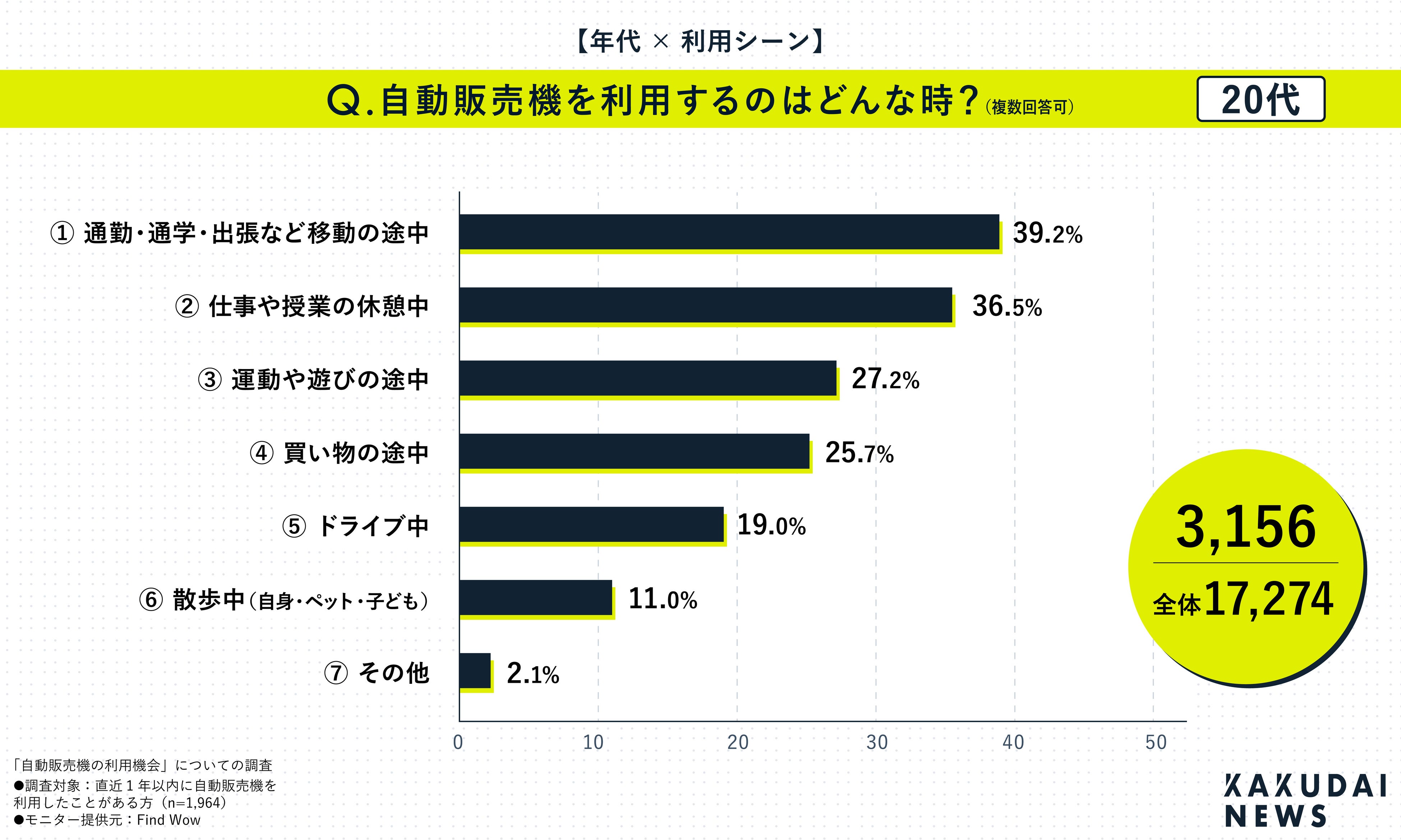 【自販機利用調査】年代別、自動販売機の利用シーンの違い