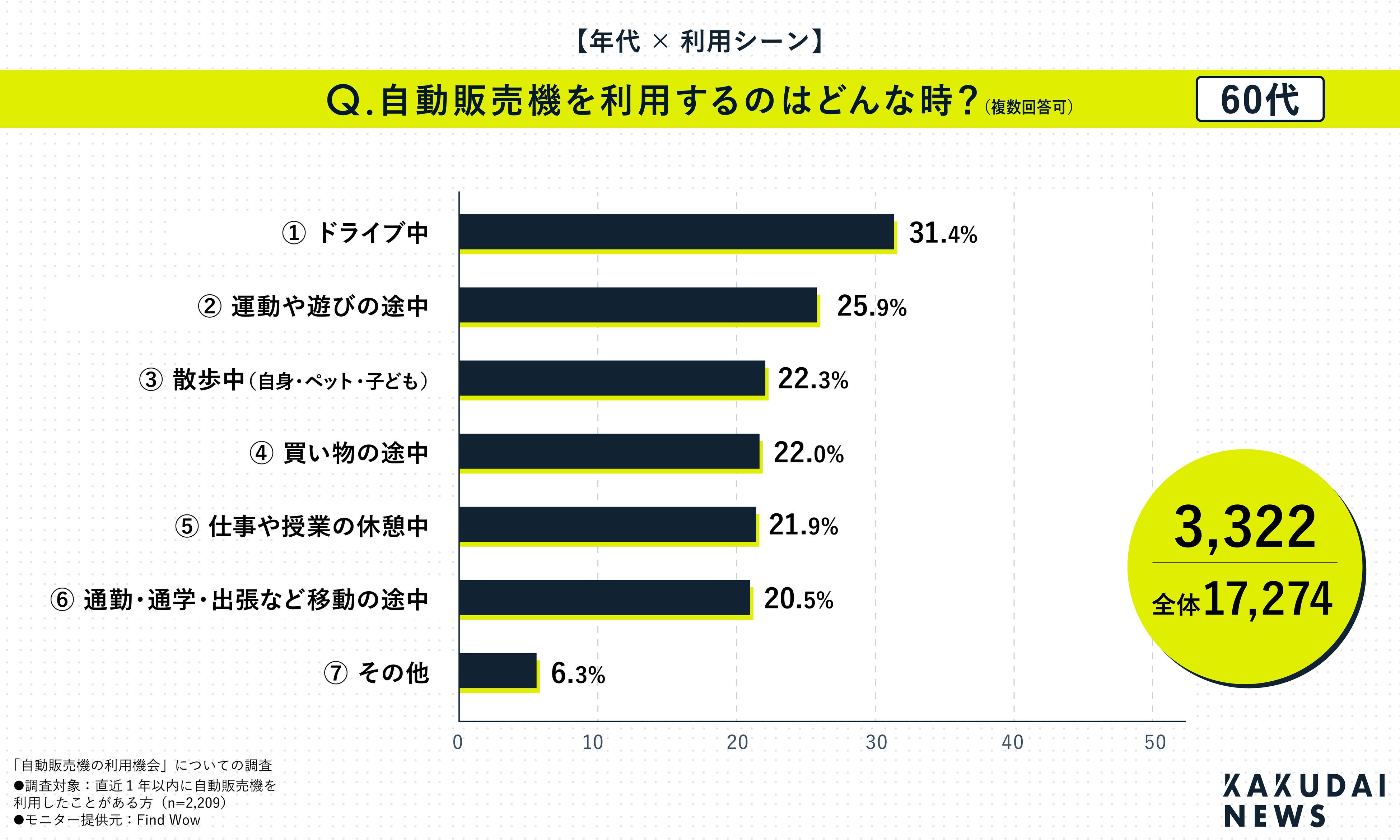 60代で最も多かったのは、『ドライブ中(31.1%)』でした。