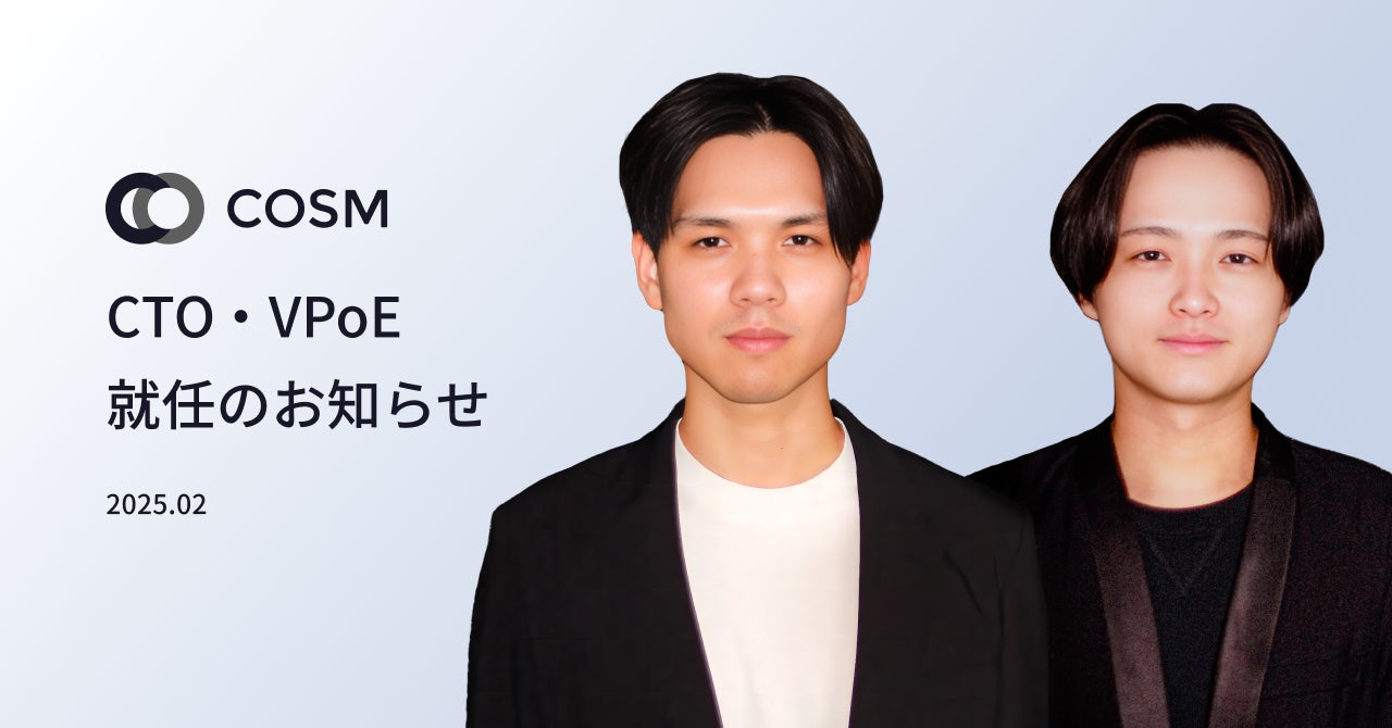 コズムは、技術革新を支える強固なエンジニア組織の構築を目指し、CTOおよびVPoEの就任を機に、さらなる成長を加速してまいります。最新技術の活用と、より高度なプロダクト開発を通じて、クライアントの皆さまへより価値の高いサービスを提供していく所存です。