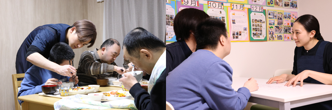 QOLD(クオルド)のグループホームは、24時間365日職員が常駐しており、障がいを持つ方々が安心して生活することができる「住まいの場」を提供しています。「いってらっしゃい」「おかえりなさい」と温かみのある家庭的な雰囲気を大切にしています。