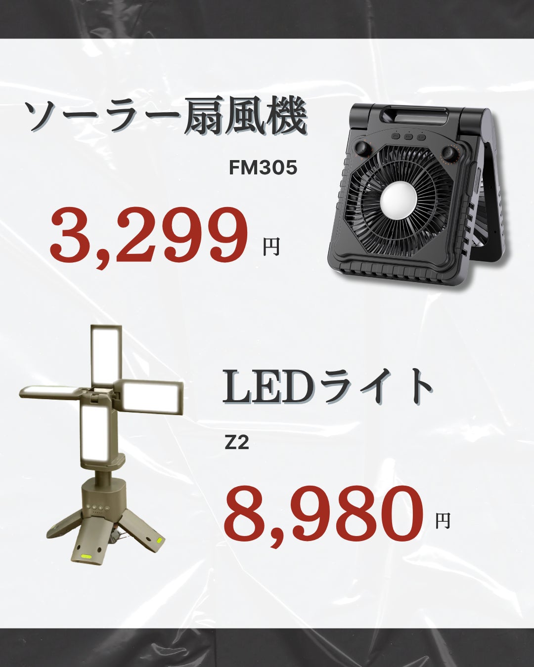 ・扇風機+ライト+モバイルバッテリーを1台にまとめたソーラー扇風機