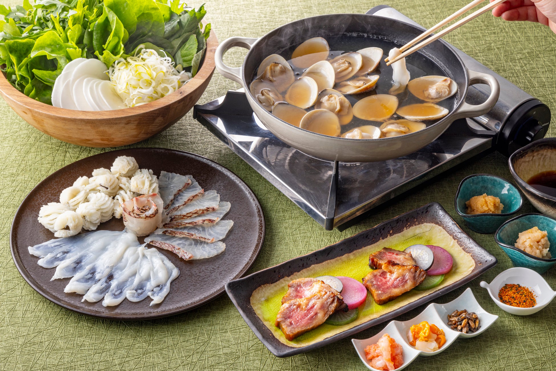 その街の個性と地元の魅力を映し出すライフスタイル・ブティックホテル「ホテルインディゴ犬山有楽苑」(愛知県犬山市 総支配人:浅沼 源太郎)は、2025年3月1日(土)より春夏シーズンにぴったりな「愛知県産ハマグリの出汁が香る海鮮タコしゃぶ鍋」を提供します。新鮮な弾力ある水だこ、贅沢な鯛や鱧、愛知県産の海の幸をしゃぶしゃぶスタイルでお楽しみいただけます。シェフ特製のハマグリの旨味が深く溶け込んだ出汁が素材の風味を引き立て、具材の豊かな味わいが広がります。さらに、食物繊維やミネラルを含むねばねば季節の葉野菜の組み合わせや、鍋と共に守口大根の粕を使った国産和牛粕漬焼きなど、ヘルシーでウェルビーイングな食体験をお届けします。