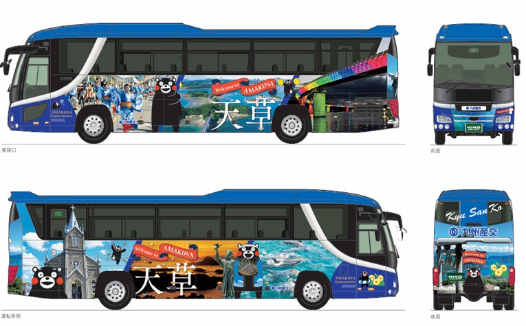 九州産交バス 大型バス 5台(既存ラッピング車両と合わせて合計10台)