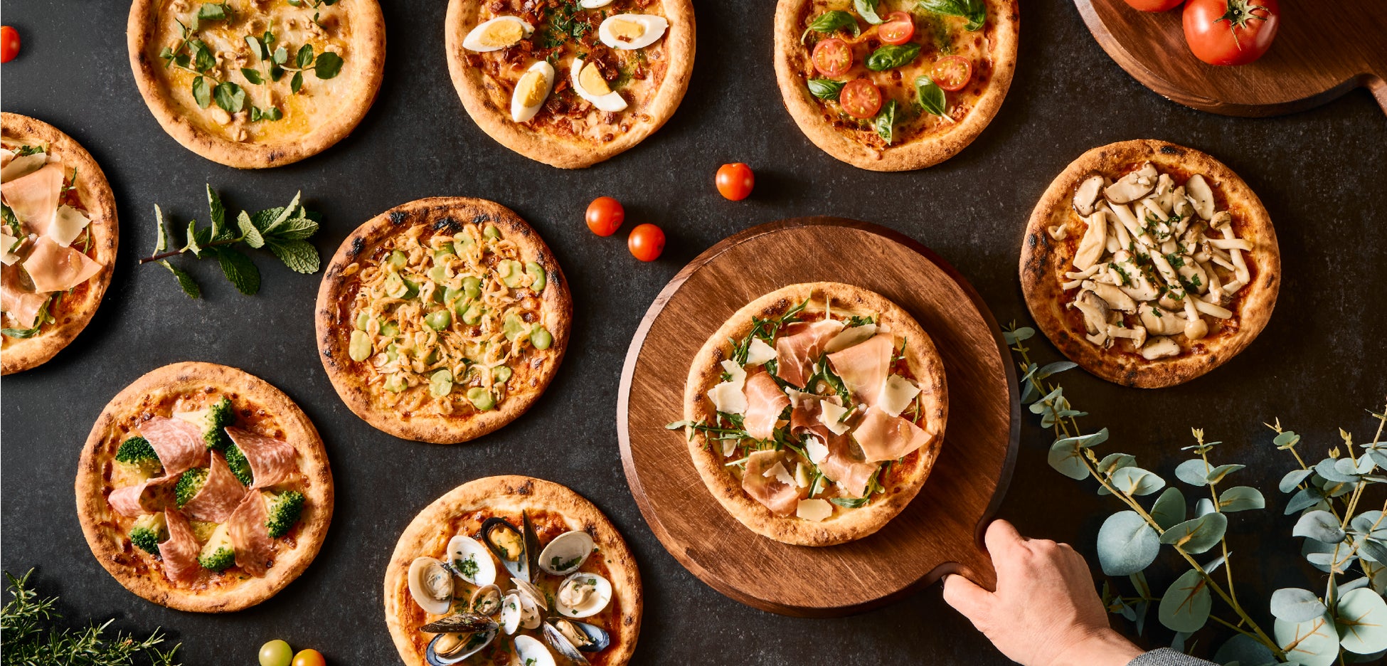 「ゴールデン メルカート ビュッフェ」の目玉の一つは、お客様ご自身がピッツァイオーロ(ピザ職人)になった気分で、オリジナルのミニピザを作れる「マイ・ピザ」コーナーです。お子様から大人まで楽しめる、手作りならではの温かみが伝わるミニピザをご用意。目の前で広がる色とりどりの具材から、お好きなものを選び、自分だけの特別な一枚を創造する喜びをぜひご体験ください。