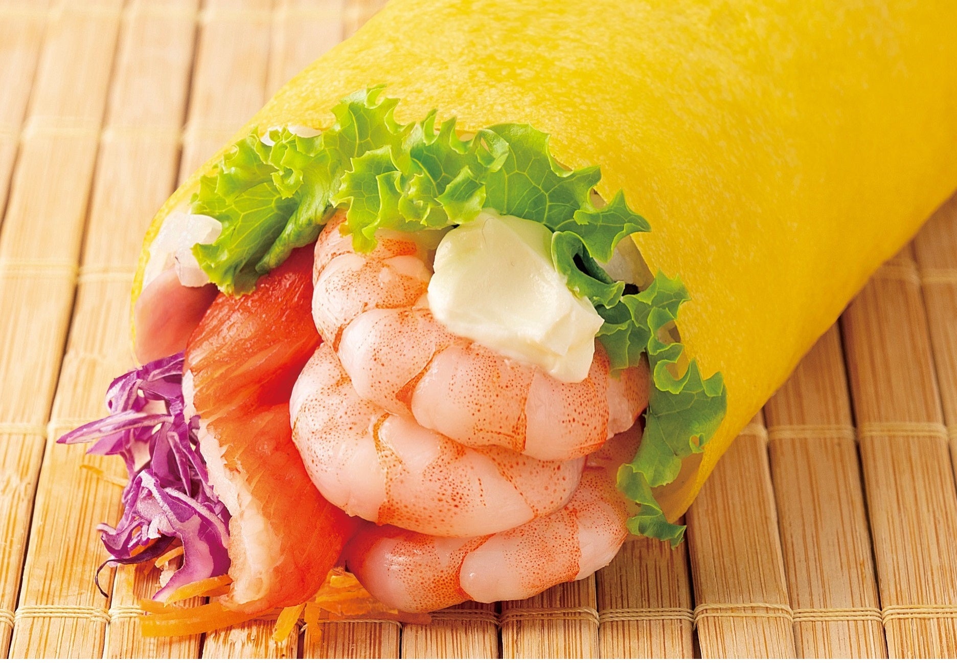 ぷりぷり食感の海老と、カニカマ、紫キャベツ、
