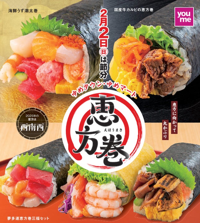 株式会社イズミは、ゆめタウン・ゆめマートなど計100店舗およびゆめオンラインにて「ゆめタウン・ゆめマートの恵方巻」の予約受付を2024年12月16日(月)より開始いたします。