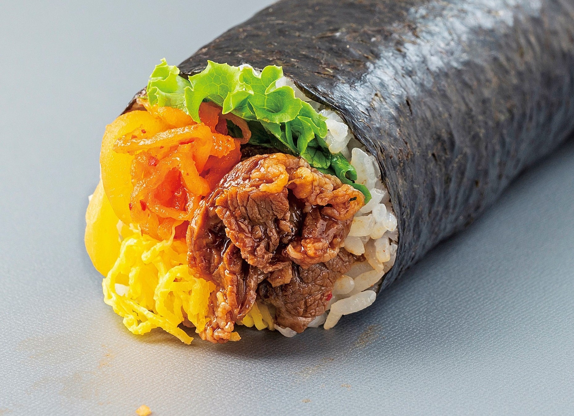 厳選した国産の牛カルビを、リンゴ果汁、コチュジャンなどを配合した特製のタレで甘辛く味付け。お腹も心も満たされる巻寿司です。