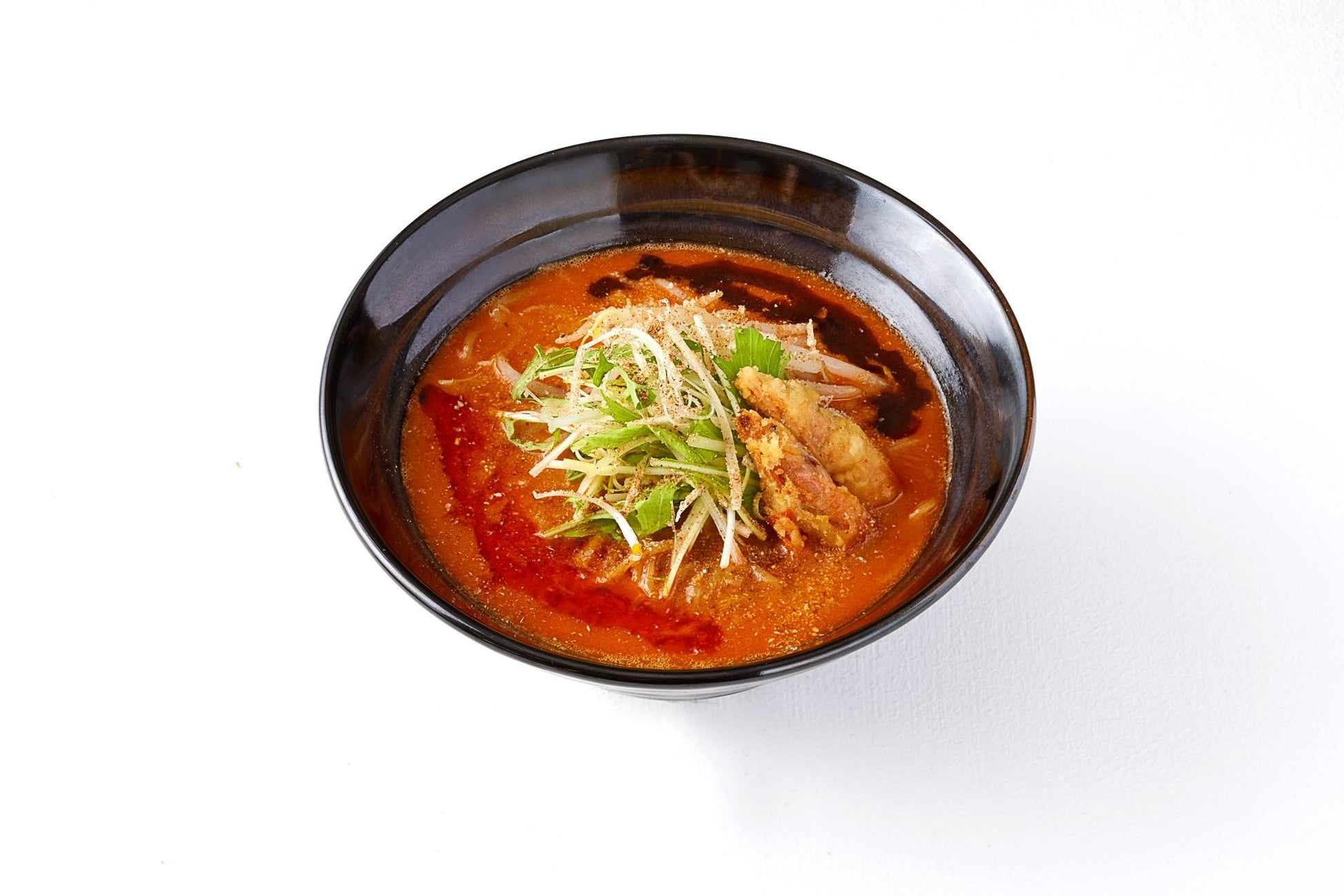 甘海老のエキスを合わせた豚骨ベースの担々麺です。風味づけに南蛮海老のオイルを使用して、海老の旨味が香ばしく、辛さの中に甘味を感じる濃厚なスープが特長です。甘エビの唐揚げをトッピングした風伯ならではの担々麺で、販売期間終了後も、たくさんのお問い合わせをいただいていました。