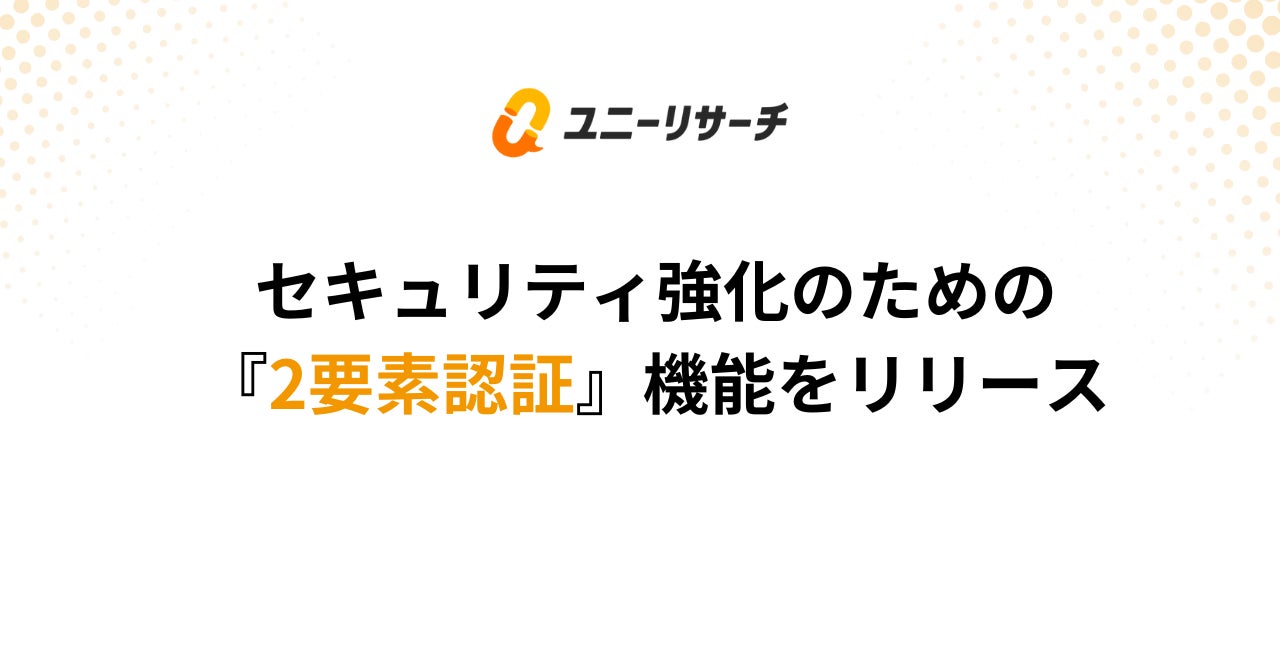株式会社プロダクトフォース(所在地:東京都港区、代表取締役CEO:浜岡 宏樹)が運営する国内最大級のダイレクトリサーチサービス「ユニーリサーチ」は、アカウントのセキュリティを強化する「2要素認証機能」をリリースしたことをお知らせします。