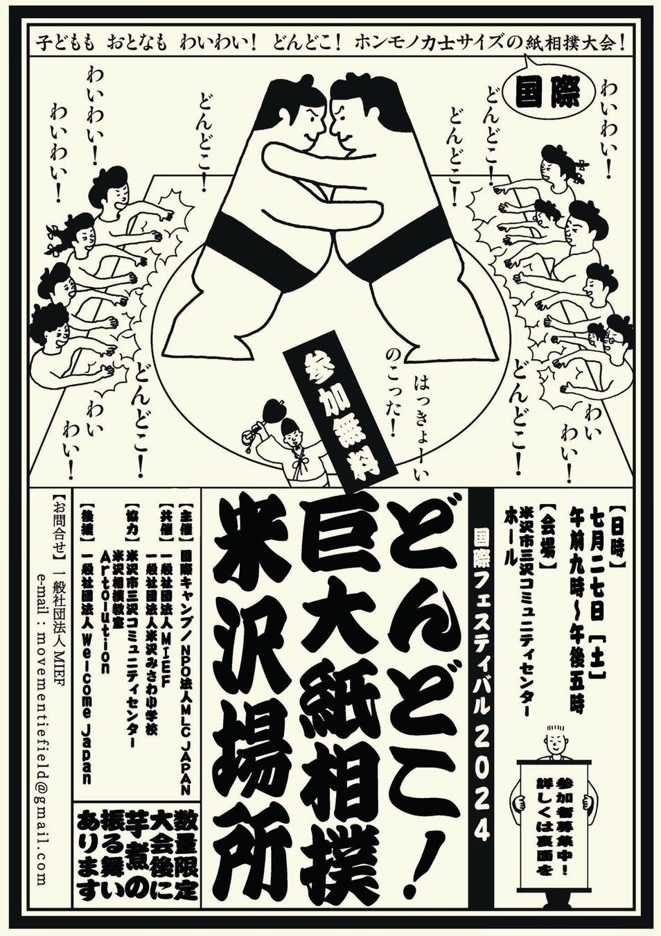 一般公開イベントとして、25日(木)に国際ファッションショーを、27日(土)に「どんどこ!巨大紙相撲大会 米沢場所」を開催します。
