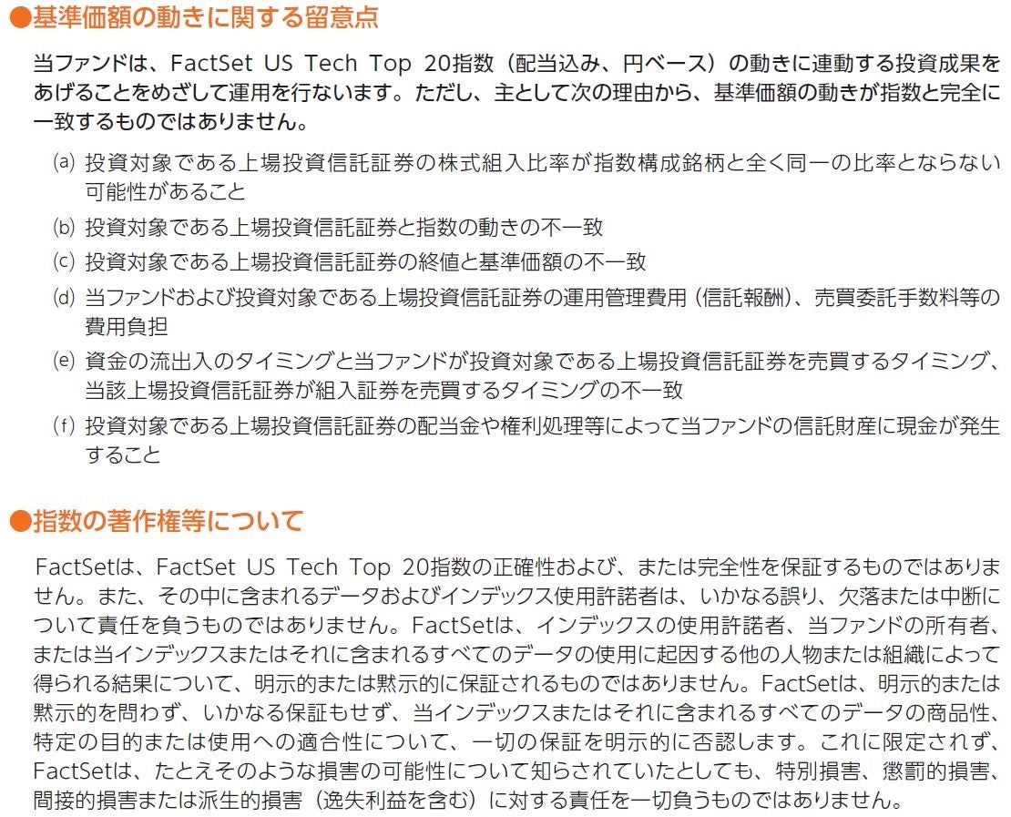 FactSet US Tech Top 20指数(配当込み、円ベース)の動きに連動した投資成果をめざします。