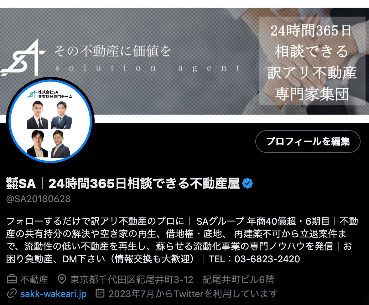 【訳アリ不動産の専門家】株式会社SAの公式X(旧 Twitter)は、X Blue(旧 Twitter Blue)を取得しました