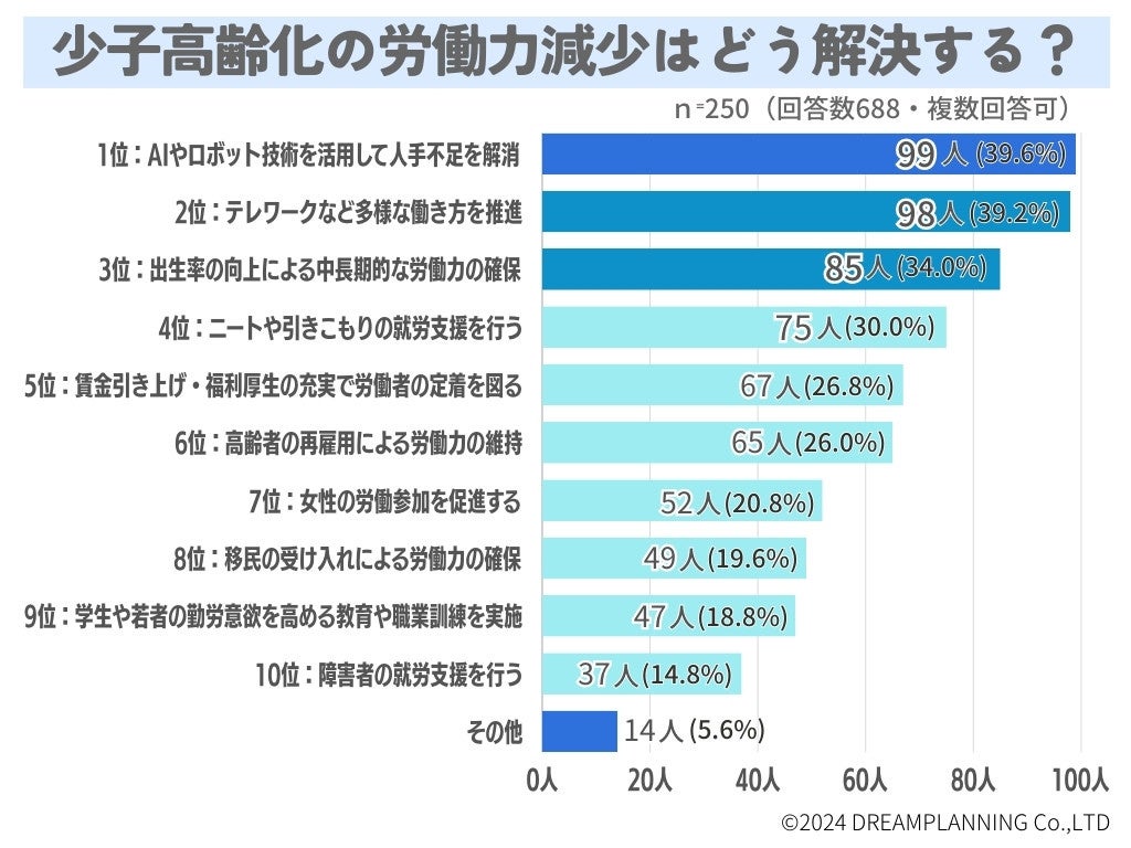「出生率の向上による中長期的な労働力の確保が最優先。(50代・男性)」