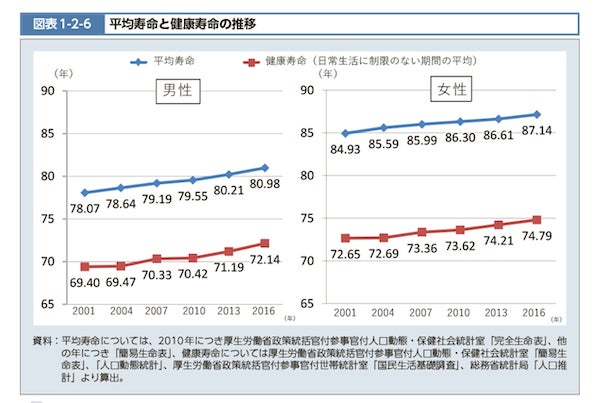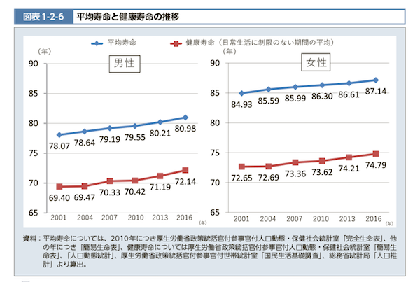 また厚生労働省では今後2040年に向けて女性89.63歳、男性83.27歳とさらに平均寿命が延びていくと予測しています。
