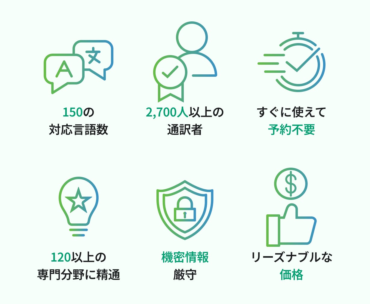 また、通訳者のスキマ時間を活用するモデルのため事前の予約は一切不要で1分からご利用いただけます。