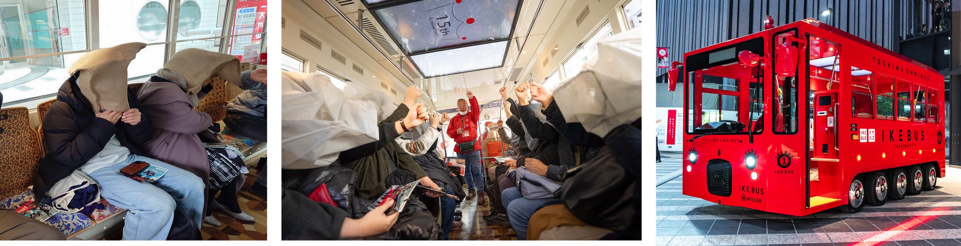 「IKEBUS」は、池袋をゆっくりめぐり、見過ごしがちな景色や魅力スポット、隠れスポットを再発見できる、真っ赤なかわいい電気バスです。今回のミステリーでは“新聞記者”になりきり、都市伝説を解明しながら物語を体験することで、これまで知らなかった池袋の一面を発見できます。ぜひみなさん体験してください。