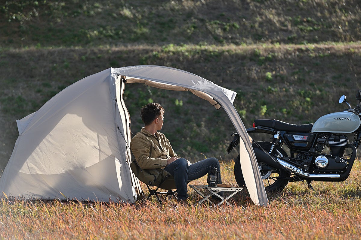 ゆったりとした空間が特長のテントとして、生まれたのが「マエヒロドーム」。バイク乗りならではの発想を詰めこんだ、バイク乗りのための理想のテントです。