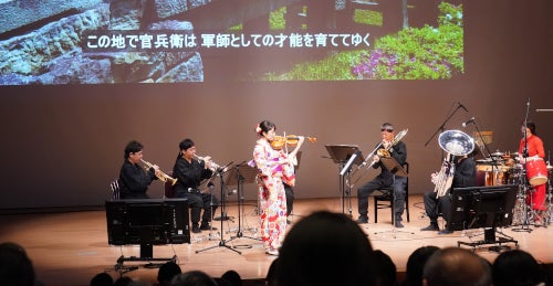 「お城EXPO」では2019年から、お城にゆかりの深い歴史ドラマのテーマ曲を演奏するコンサートを開催してきました。2021年からは東京都交響楽団の金管楽器メンバーによって結成された「NINJA BRASS」が登場。翌2022年にはヴァイオリンの美しい音色を奏でる「お忍びの姫君」、さらに2023年にはパーカッション(打楽器)の「赤忍者」も加わり、お城の映像とともに歴史ドラマの名曲を楽しめるステージへと進化しました。