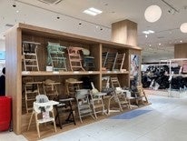 今回のリニューアルでは、子どもたちと一緒にワクワク、ドキドキできる空間を目指して、木の温もりや陽の光などを採用し、赤ちゃんがいる暮らしが垣間見える空間にしました。お買い物がストレスにならないよう、子どもたちと休憩できる特別なスペースを新たに用意し、赤ちゃんや子どものことを知り尽くしているスタッフがお客さまに寄り添い、サポートします。