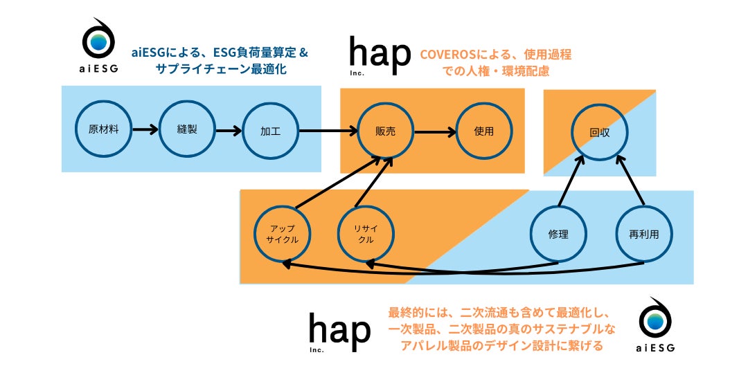 同社が開発した「COVEROSSレイヤーテクノロジー」を応用したサステナブルファッション製品「カバロスのサーキュラーファッション」は、第11回技術・経営イノベーション大賞において、最高位である内閣総理大臣賞を受賞しています。このような取り組みを通して、hap社はサーキュラーファッションの発展に寄与する先進的な技術・サービスの開発を推進しています。