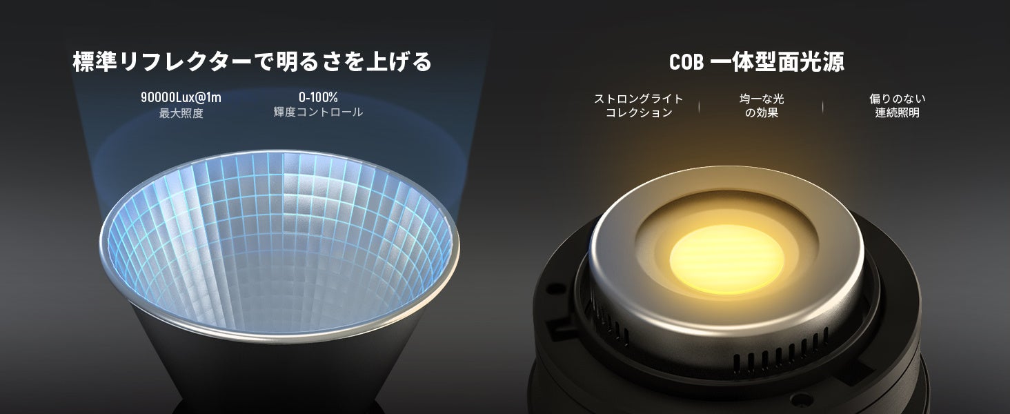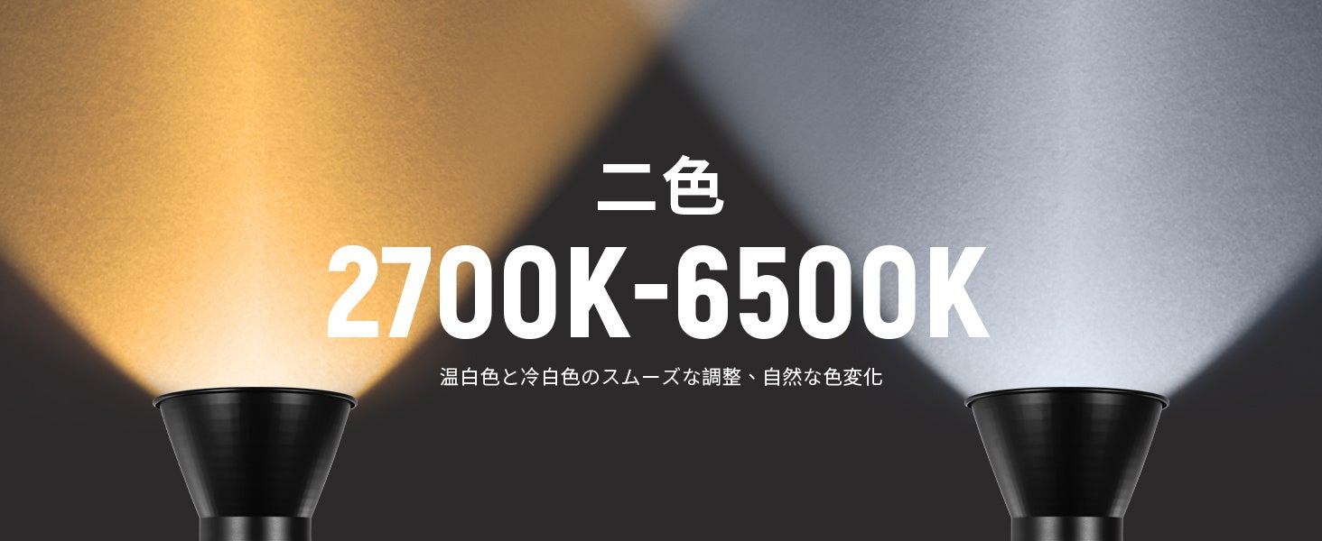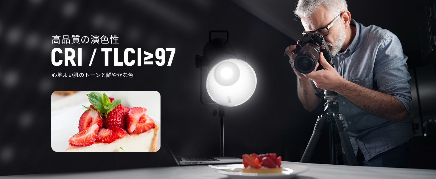 90000Lux/1m の最大照度と安定したちらつきのない2色照明を提供し、ビデオ録画、結婚式、ポートレート、製品写真撮影に使用できます。明るさは0%から100%まで調整でき、色温度範囲は2700Kから6500Kまでです。CRI/TLCI 97+は正確な色再現を保証し、鮮やかで魅力的な写真やビデオの撮影することができます。