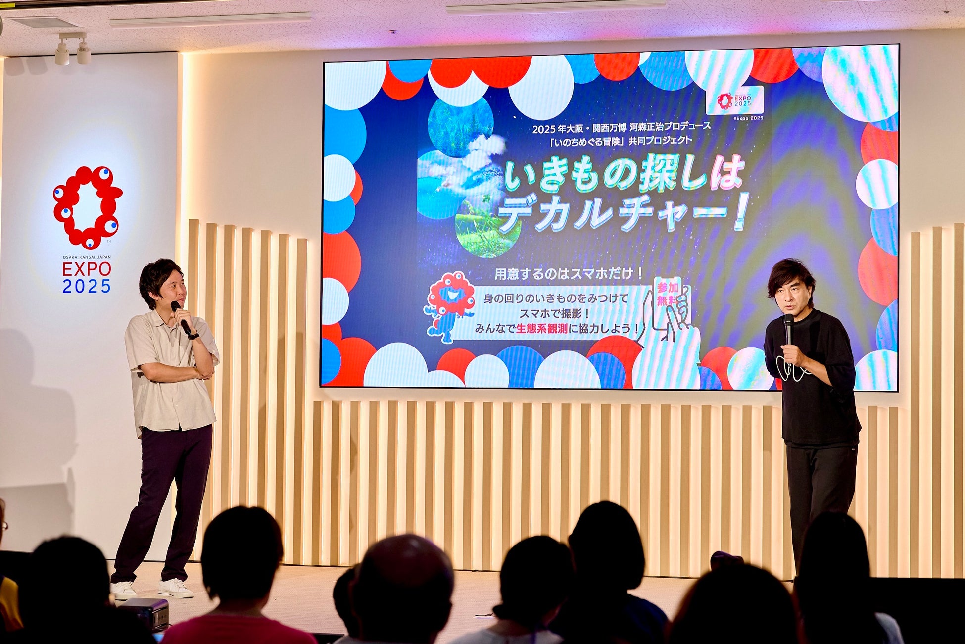 また「いのちめぐる冒険」パビリオンにて、協賛パートナーと共に進める生態系調査プロジェクト「いきもの探しはデカルチャー!」。