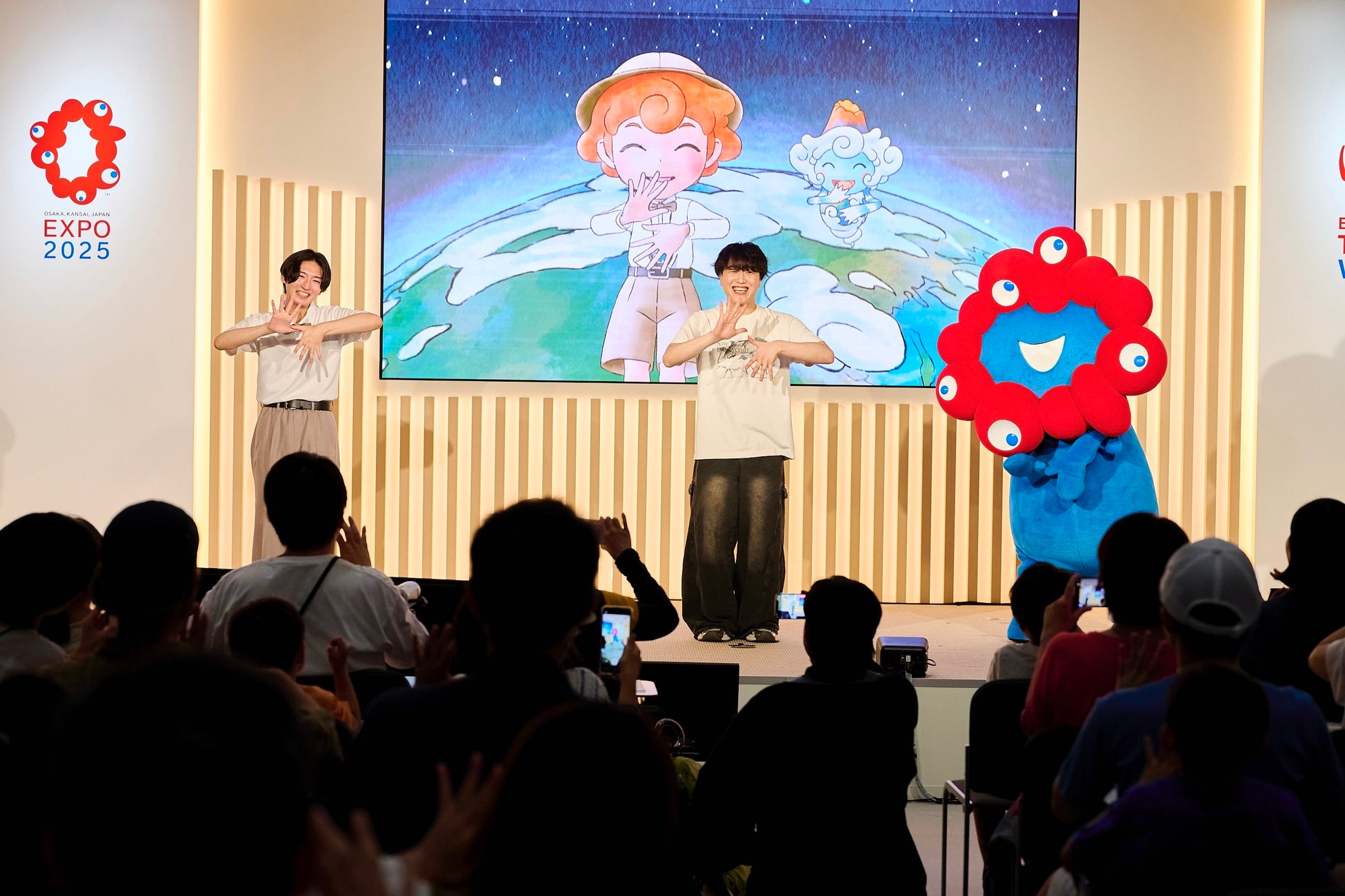 司会にはカナデ役声優・谷江玲音さんが登場。また、この主題歌ダンスの振り付けを手がけた 振付師・ぶんけいさんと万博公式キャラクター ミャクミャクも登場し、会場は一層の盛り上がりを見せました。