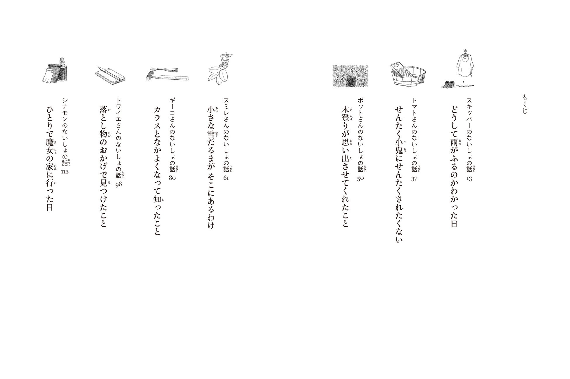 スキッパー、トマトさん、ポットさん、スミレさん、ギーコさん、トワイエさん、ふたご……。だれにでも、胸の中に秘めた大切なできごとがある。静かな日々の中に起こる不思議な出来事や発見、喜ぶなどが、たっぷりの絵と共に語られる短編集。「こそあどの森の物語」シリーズ誕生30年を記念した姉妹編2冊目。