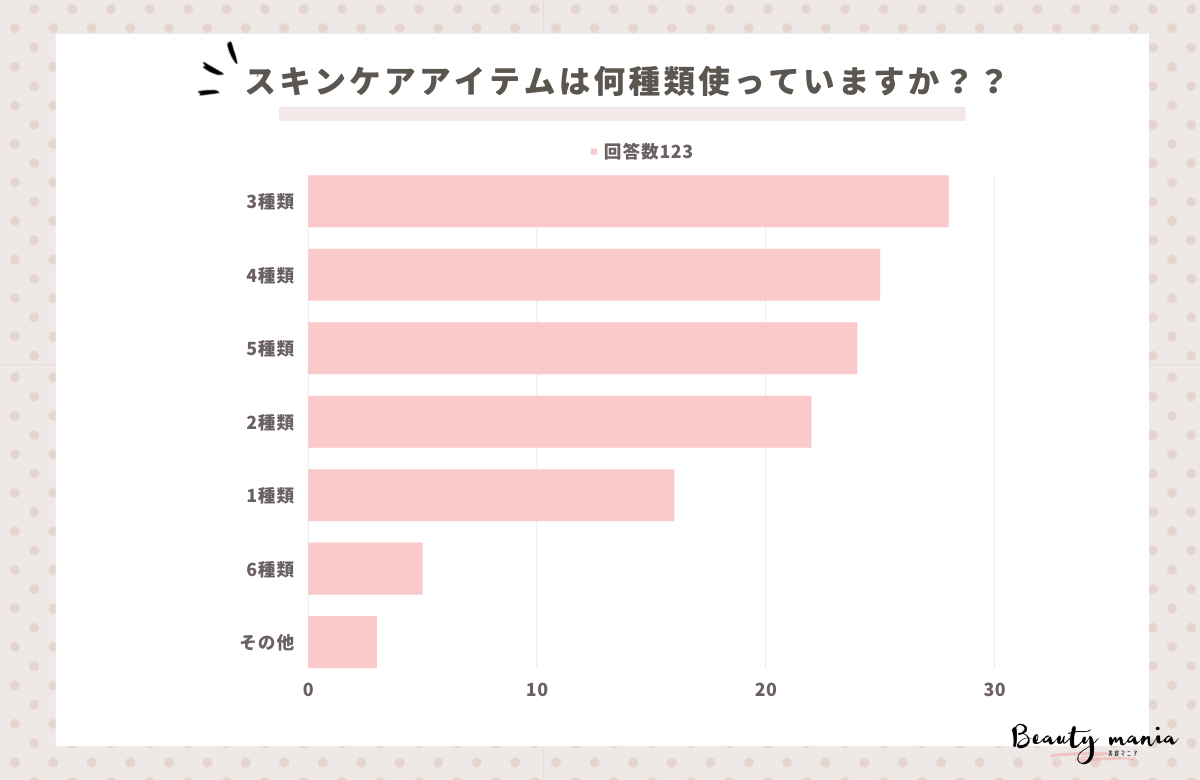 アンケート内容: スキンケアアイテムは何種類使っていますか?