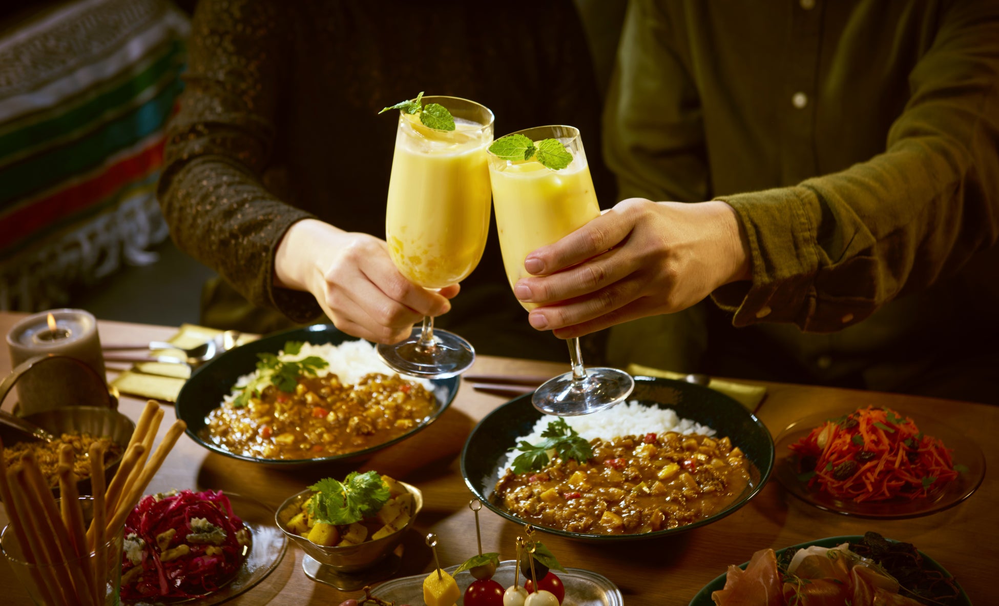 「新しい酒文化を創造する蔵」をテーマに掲げる梅乃宿酒造は、ラッシーのお酒「大人の宴のラッシー 芒果(マンゴー)」と、ラッシーのお酒のおいしさを加速させる「ラッシーを美味しくするカレー」を一緒に楽しむことで生まれる、ワクワクさせる「お酒・食体験」をお客様に提供いたします。