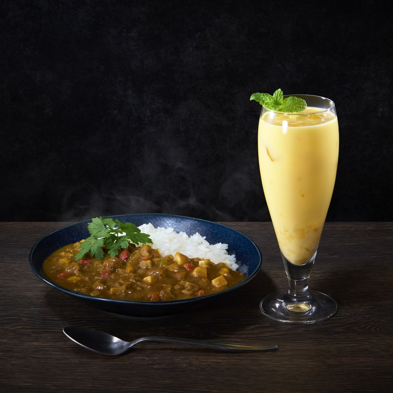スパイシーなカレーをひと口食べたら、思わず甘いラッシーのお酒に手が伸びる。ラッシーのお酒でほろよいすれば、カレーのスパイスの印象が不思議と変わっていく。